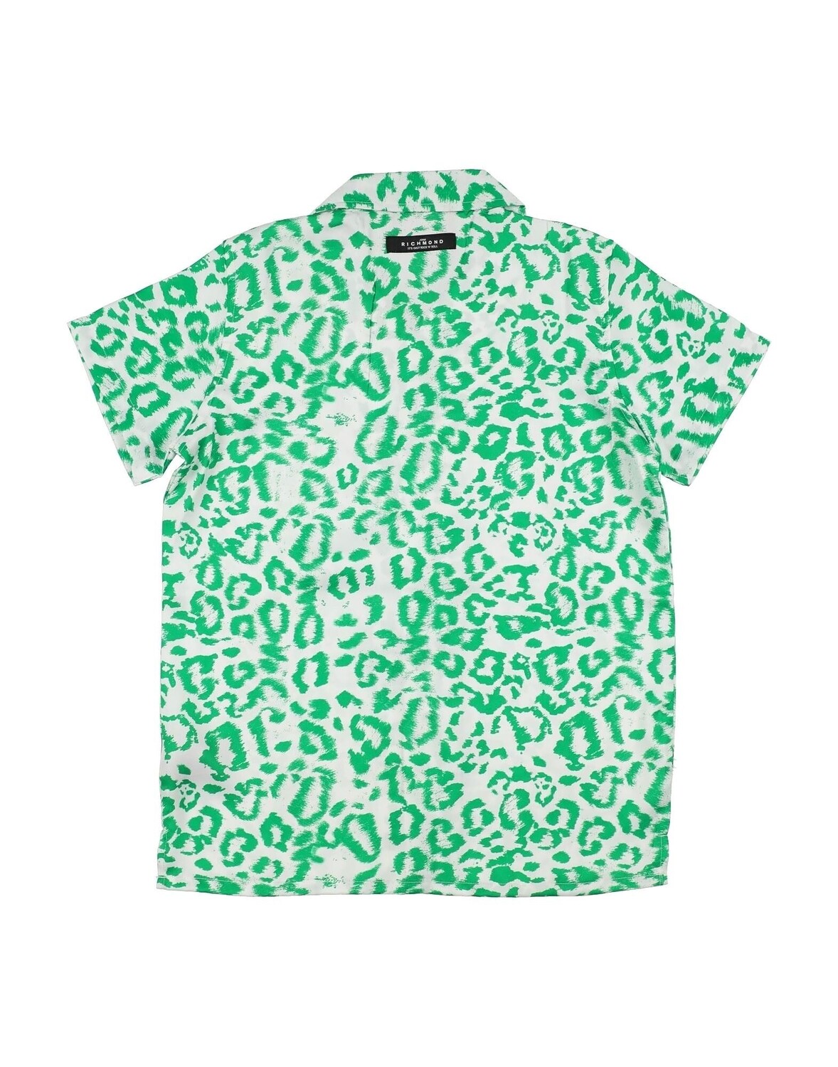 Сатин, без аппликаций, леопардовый принт, воротник классический, рукава короткие, застежка на пуговицы, без карманов, машинная стирка, не отбеливать, нельзя сушить в стиральной машине.