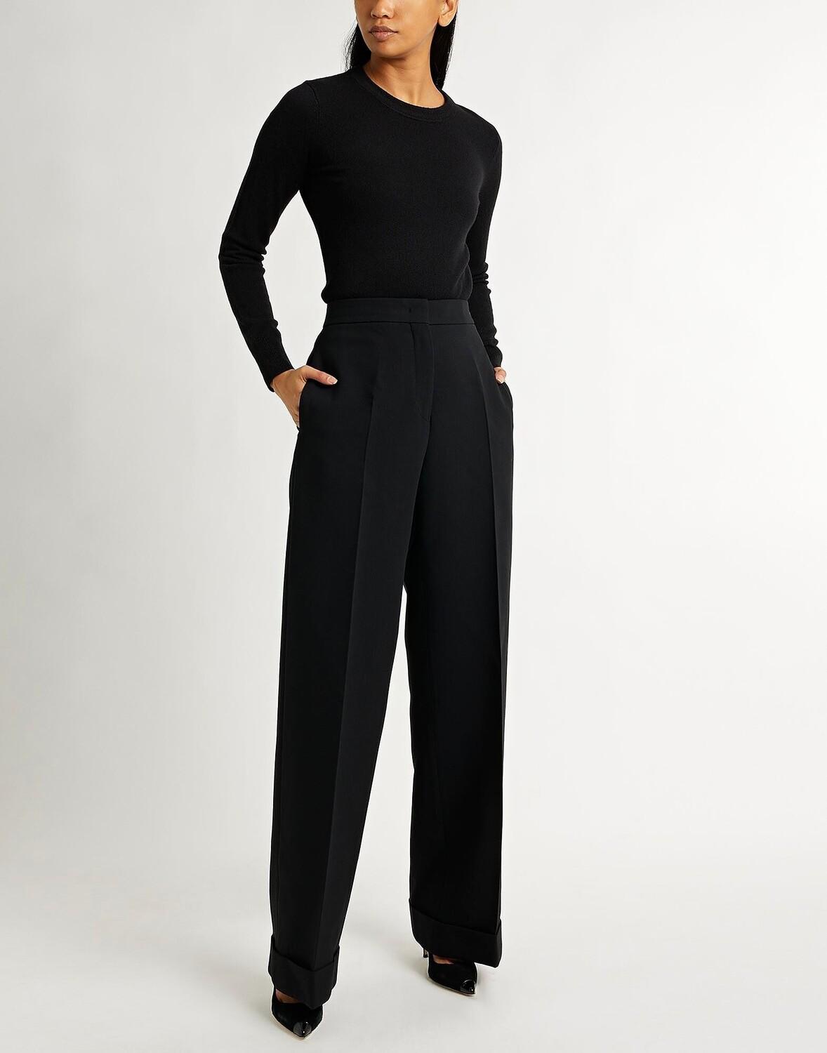Креп, без аппликаций, одноцветное изделие, завышенная талия, прямые брючины, удобная посадка, застежка на крючки, застежка-молния, множество карманов, брюки, большой размер