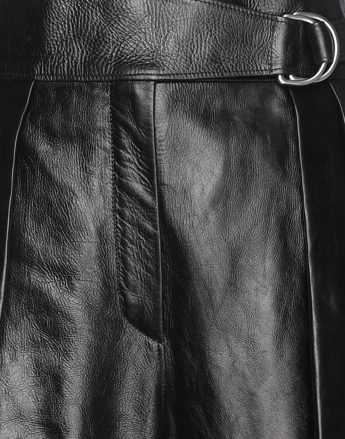 Кожа, пряжка, одноцветное изделие с аппликациями, высокая талия, широкая брючина, удобная посадка, застежка-молния, множество карманов, содержит нетекстильные части животного происхождения, большой размер