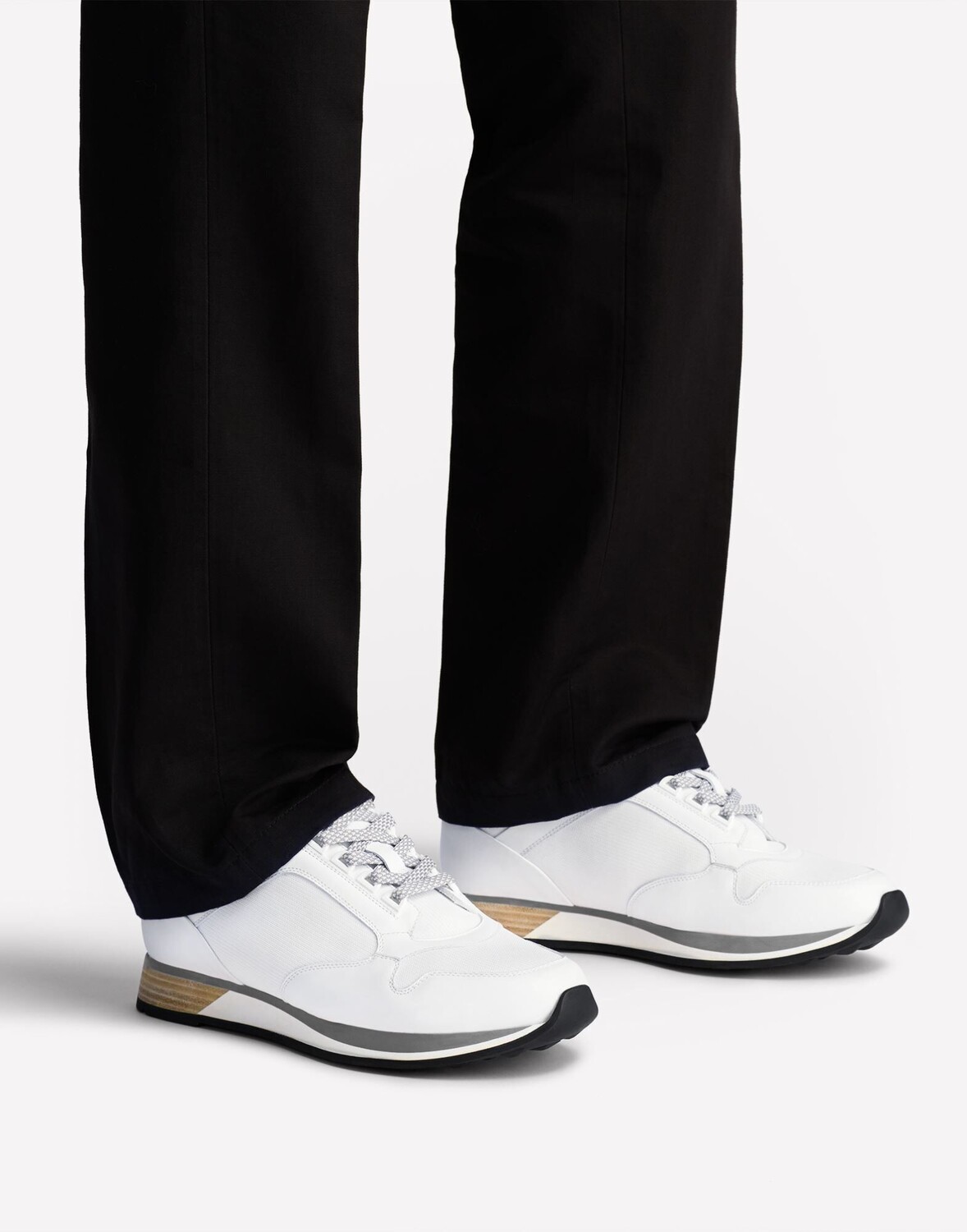 Техническая ткань, кожа, металлический принт, логотип бренда, одноцветное изделие с принтом, кожаная подкладка, шнуровка, скругленный носок, без каблука, резиновая подошва с тиснением, содержит нетекстильные части животного происхождения, низкие кеды и кроссовки