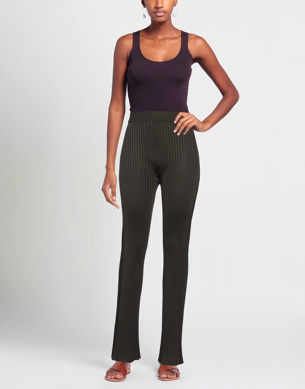 Трикотаж, легкий трикотаж, логотип бренда, одноцветное изделие, завышенная талия, приталенный крой, без карманов, ручная стирка или химчистка, нельзя отбеливать, нельзя сушить в стиральной машине, брюки-клеш, рассчитаны на свободный крой