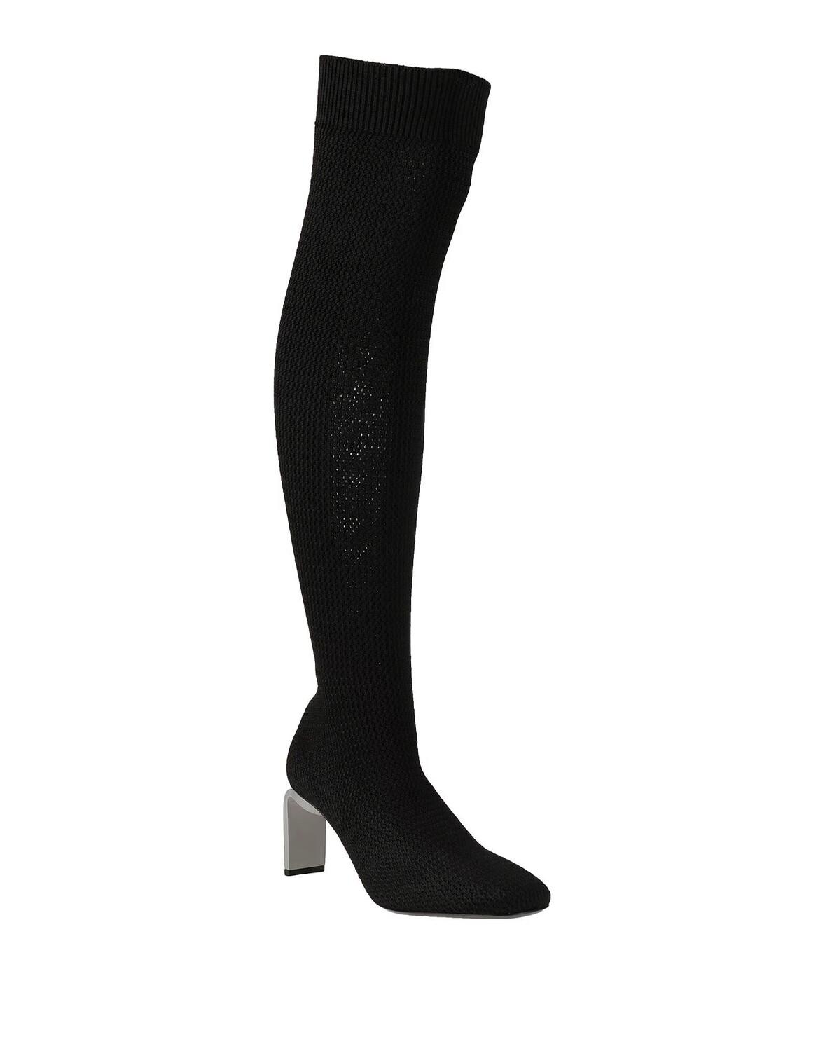 Трикотажное изделие, без аппликаций, одноцветное изделие, без подкладки, скругленный носок, геометрический каблук, металлический каблук, кожаная подошва, содержит нетекстильные части животного происхождения, модель ботфортов