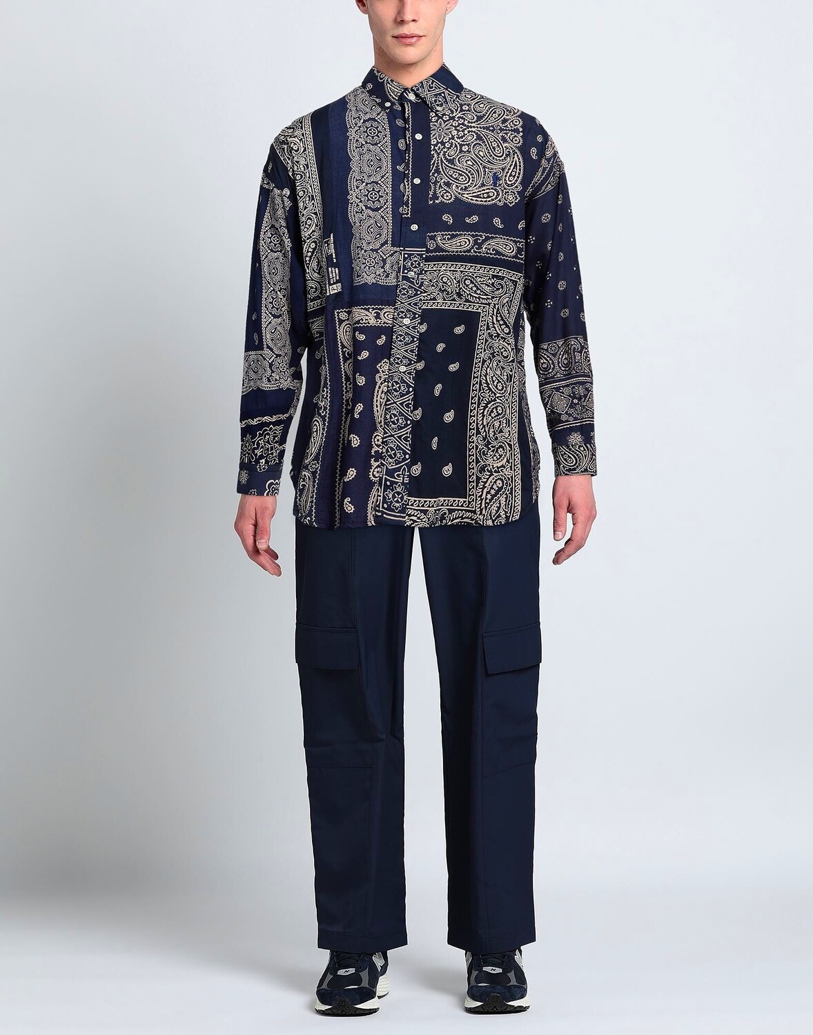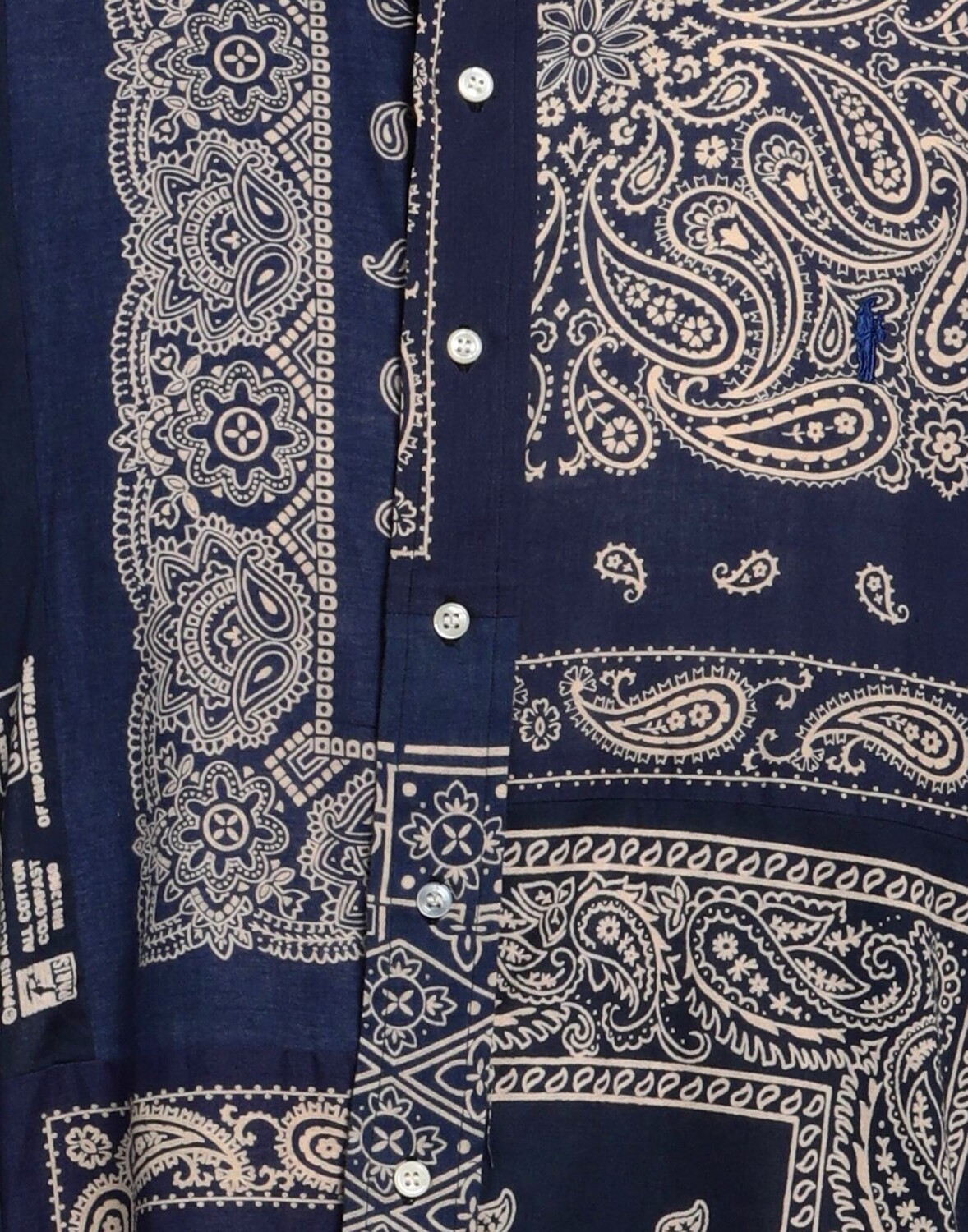 Ткань, вышитый логотип, принт «пейсли», воротник на пуговицах, длинные рукава, застежка на пуговицах, без карманов, химчистка, нельзя отбеливать, нельзя сушить в стиральной машине, нельзя гладить, рубашка обычного кроя