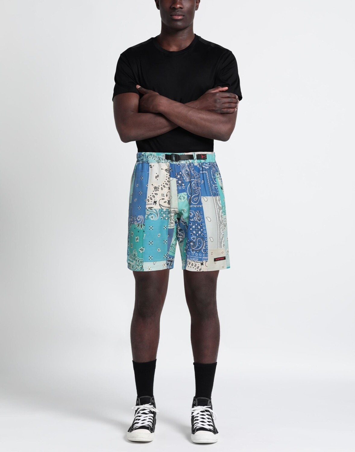 Ткань, логотип бренда, бретели, принт «пейсли», завышенная талия, резинка на талии, множество карманов, химчистка, нельзя отбеливать, нельзя сушить в стиральной машине, повседневные шорты