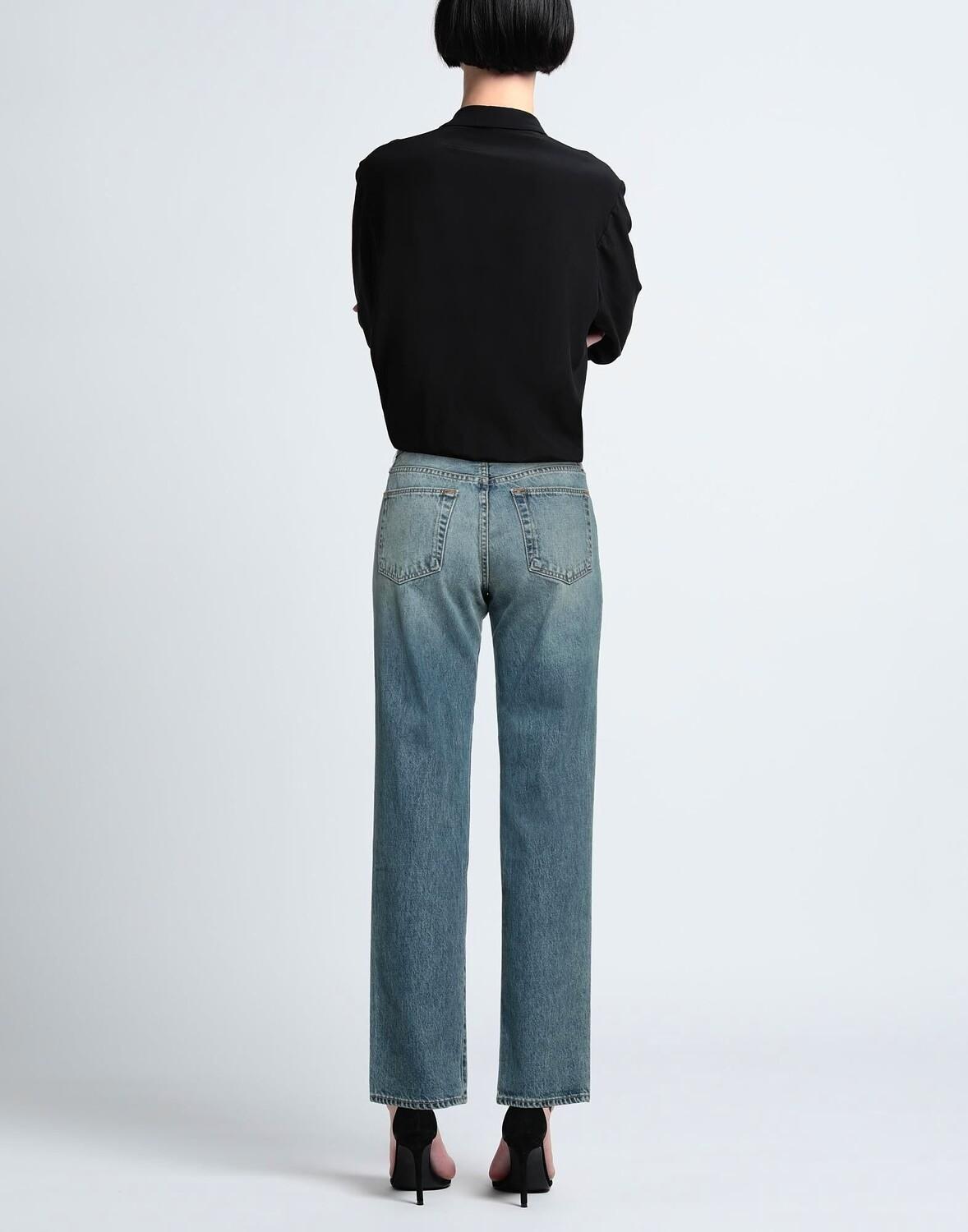 Деним, выцветший, логотип бренда, одноцветное изделие, средняя стирка, средняя посадка, застежка-молния, 1 пуговица, пять карманов, зауженная модель