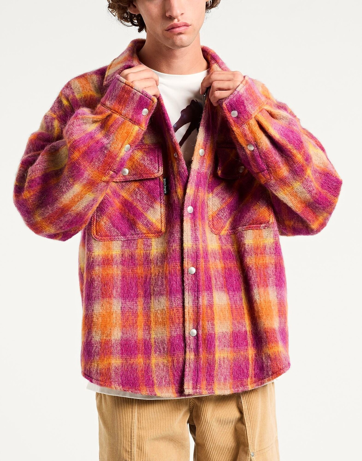 Фланель, логотип бренда, клетка, классический воротник, длинные рукава, манжеты на кнопках, кнопки, два нагрудных кармана, химчистка, нельзя отбеливать, нельзя сушить в стиральной машине, верхняя рубашка