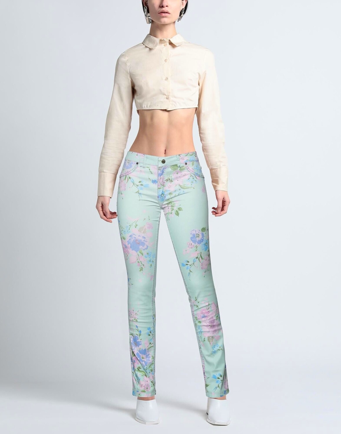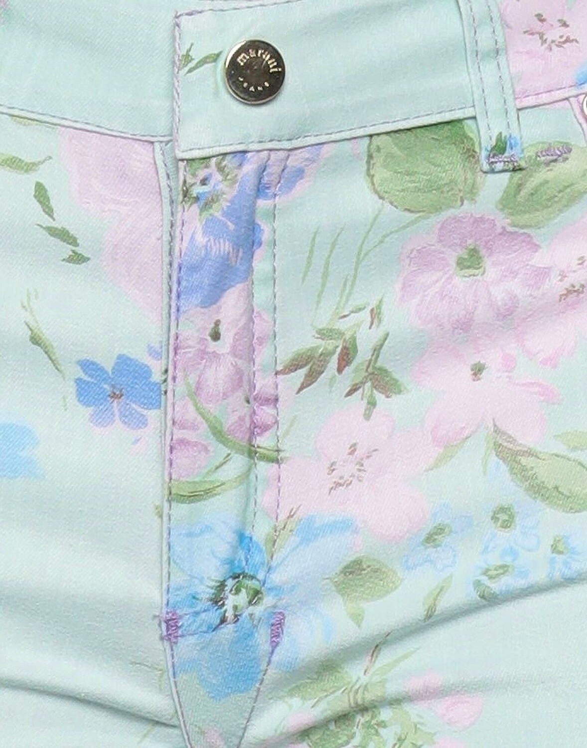 Джинсовая ткань, логотип бренда, цветочный дизайн, цветная расцветка, средняя посадка, шлевки для ремня, прямые брючины, стандартный крой, застежка-молния, 1 пуговица, множество карманов, стрейч, двусторонняя модель, модель прямого кроя