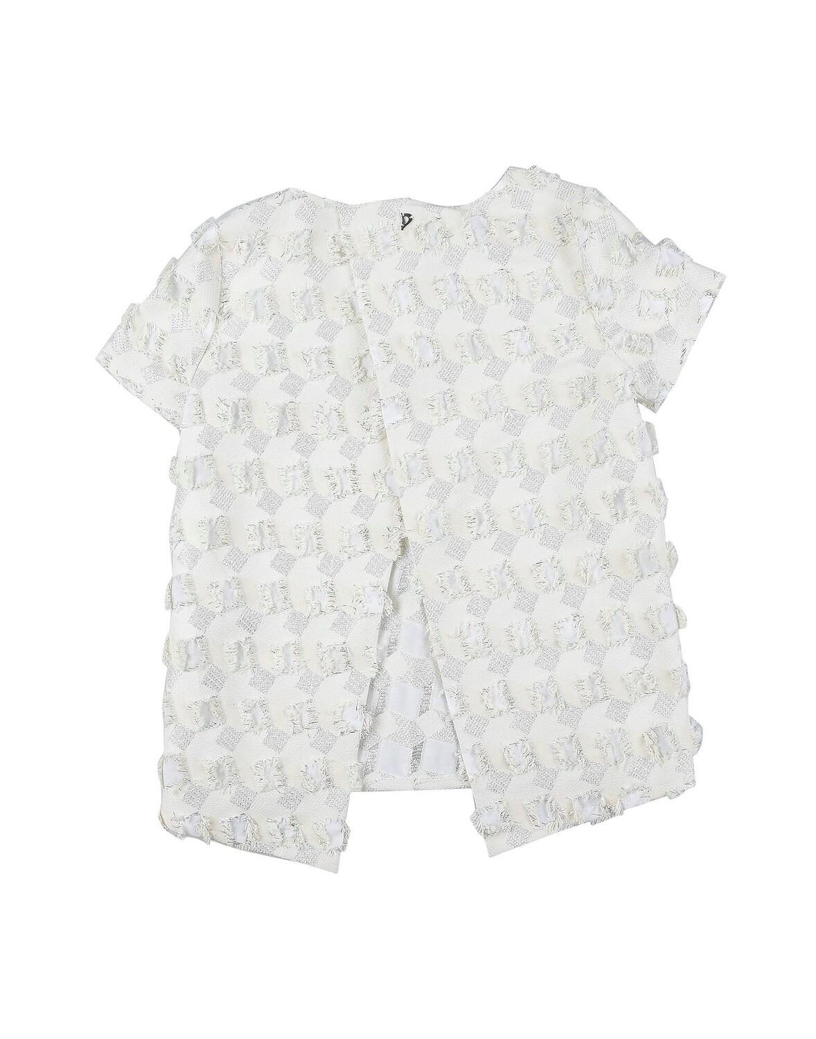 Жаккард, полотняное переплетение, ламе, логотип бренда, многоцветный, круглый вырез, короткие рукава, без карманов, стирка при 30°C, химическая чистка, нельзя отбеливать, нельзя сушить в стиральной машине, гладить при температуре не выше 110°C, маленький размер