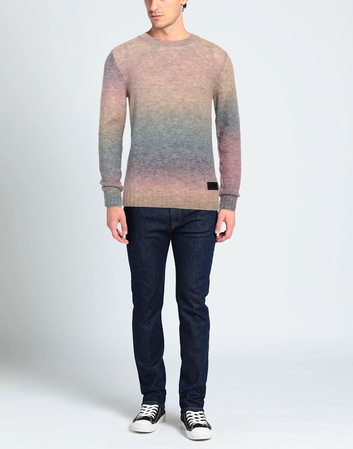 Трикотаж, меланж, легкая вязка, логотип бренда, разноцветный узор, круглый воротник, длинные рукава, без карманов