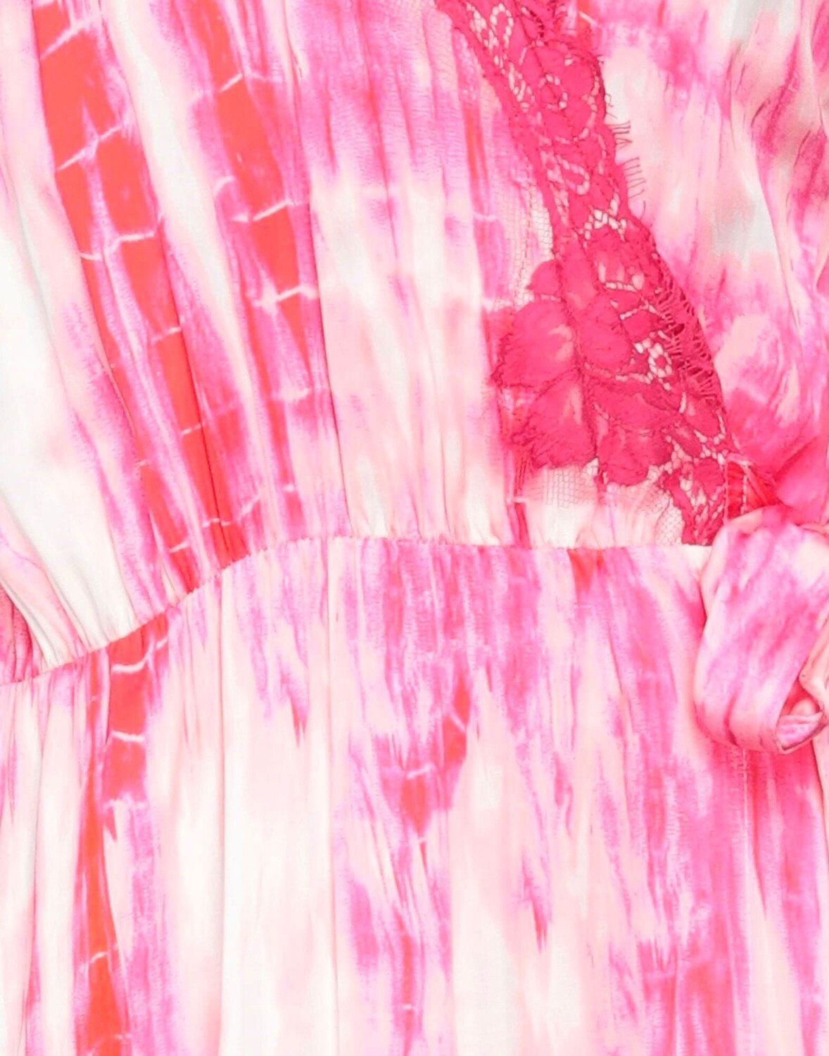 Кружево, атлас, пояс, разноцветный узор, глубокий вырез, длинные рукава, без подкладки, завязка, без карманов, платье-рубашка