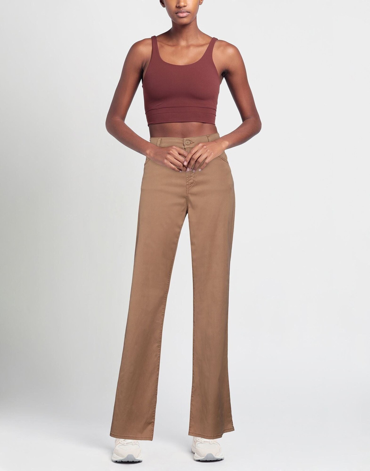 Саржа, логотип бренда, одноцветное изделие, завышенная талия, широкая брючина, стандартная посадка, пять карманов, эластичная ткань, 5 карманов