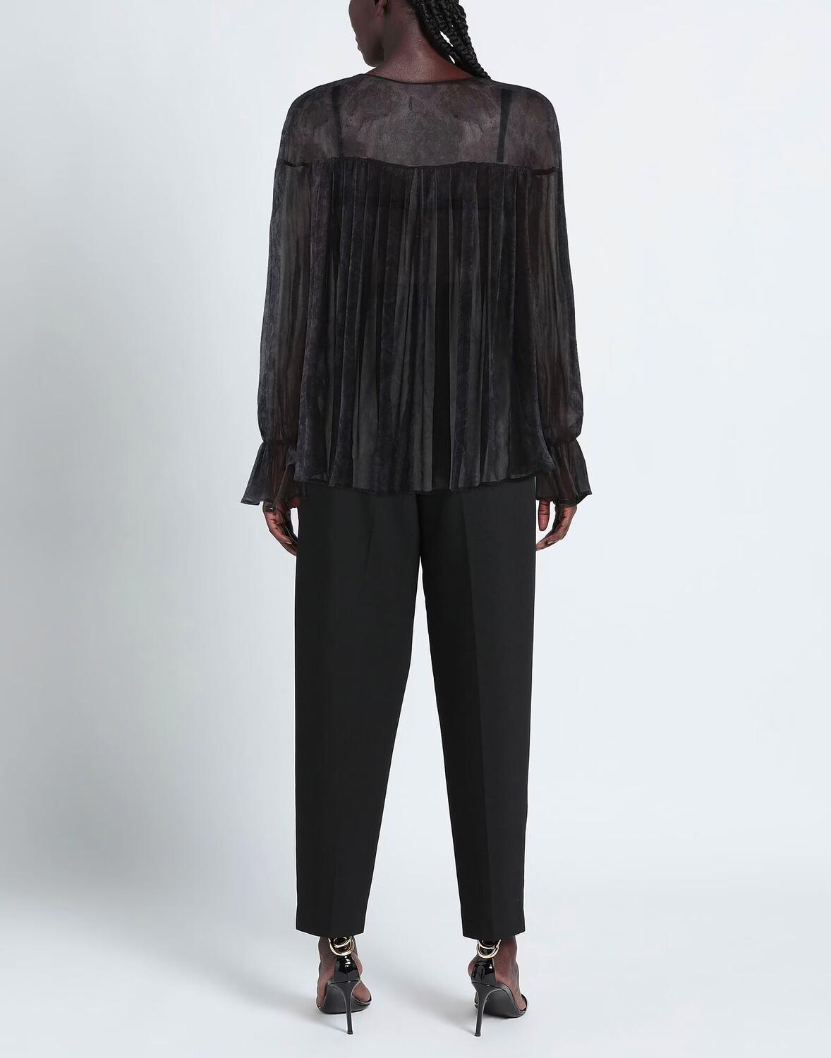 Креп, плиссировка, одноцветное изделие, v-образный вырез, длинные рукава, без карманов, маленький размер, топ