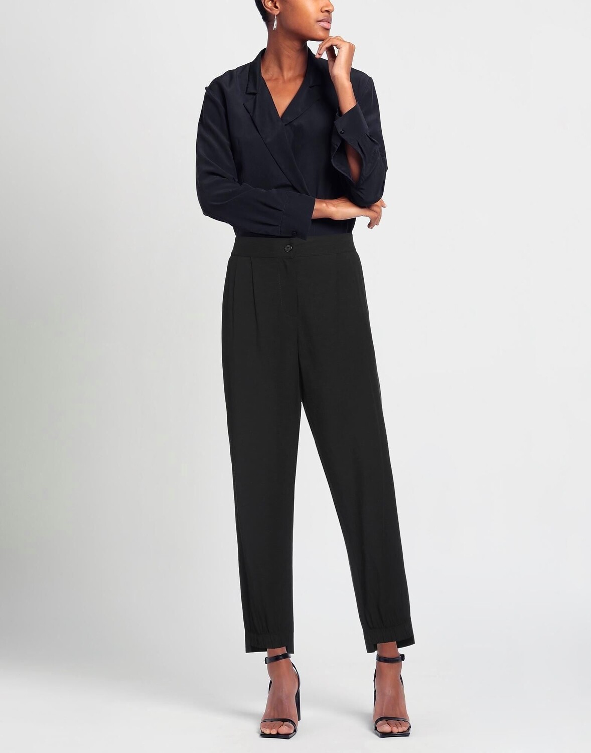 Полотняное переплетение, складки, одноцветное изделие, завышенная талия, прямые брючины, стандартный крой, застежка-молния, 1 пуговица, множество карманов, индивидуальный заказ