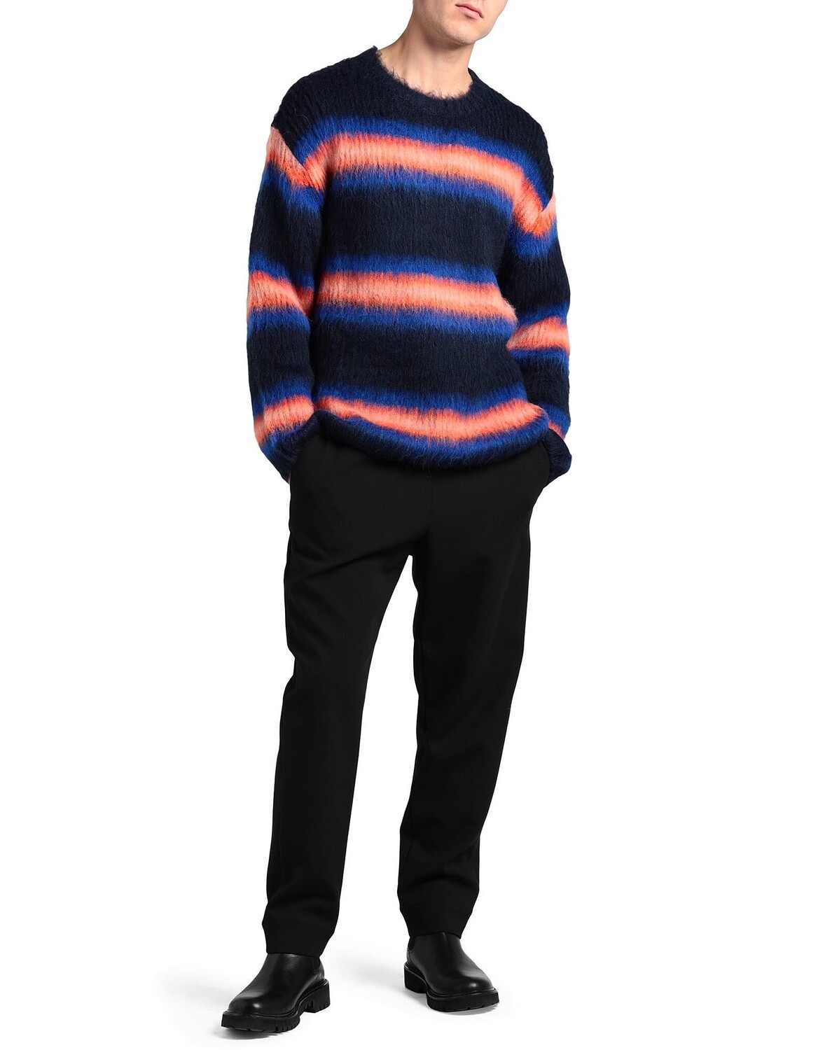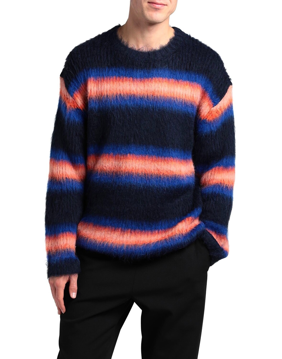 Трикотаж, логотип бренда, полоски, круглый воротник, длинные рукава, без карманов, большой размер.
