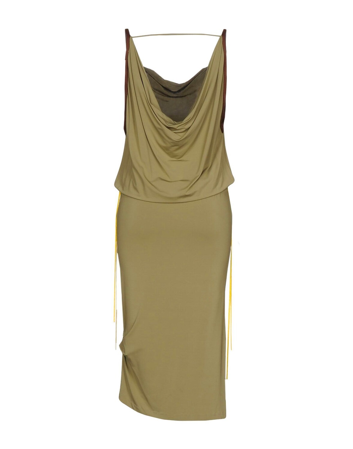 Джерси, логотип, одноцветное изделие, воротник с драпированным вырезом, без рукавов, без подкладки, без застежки, платье