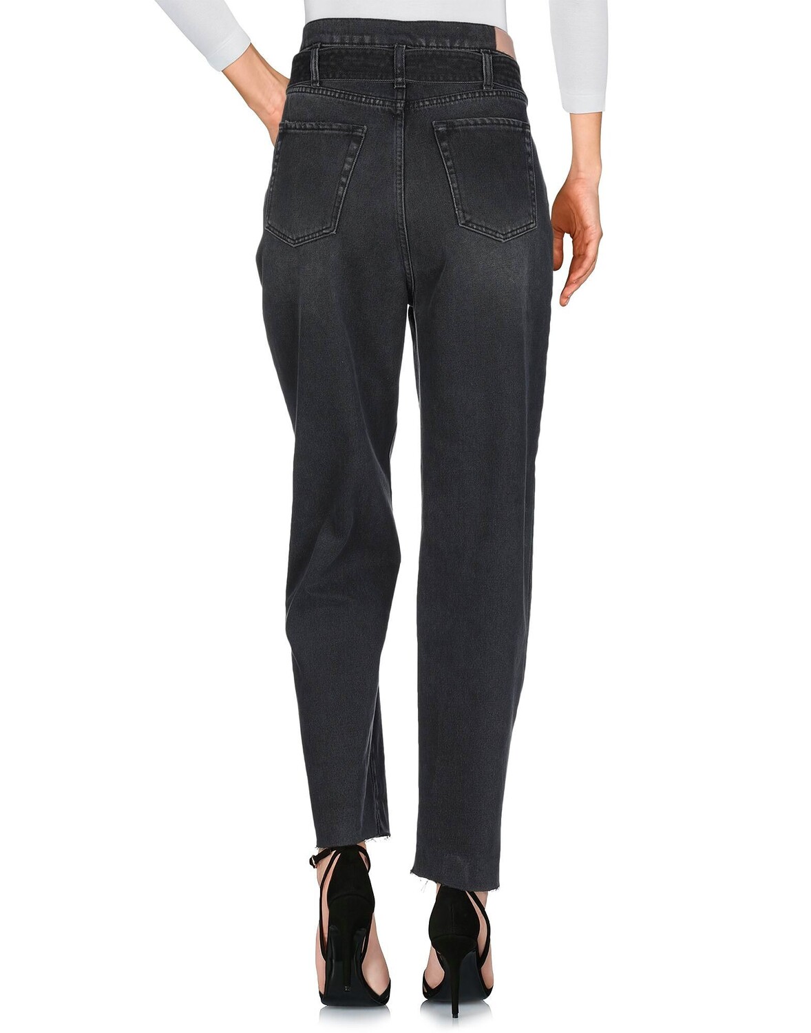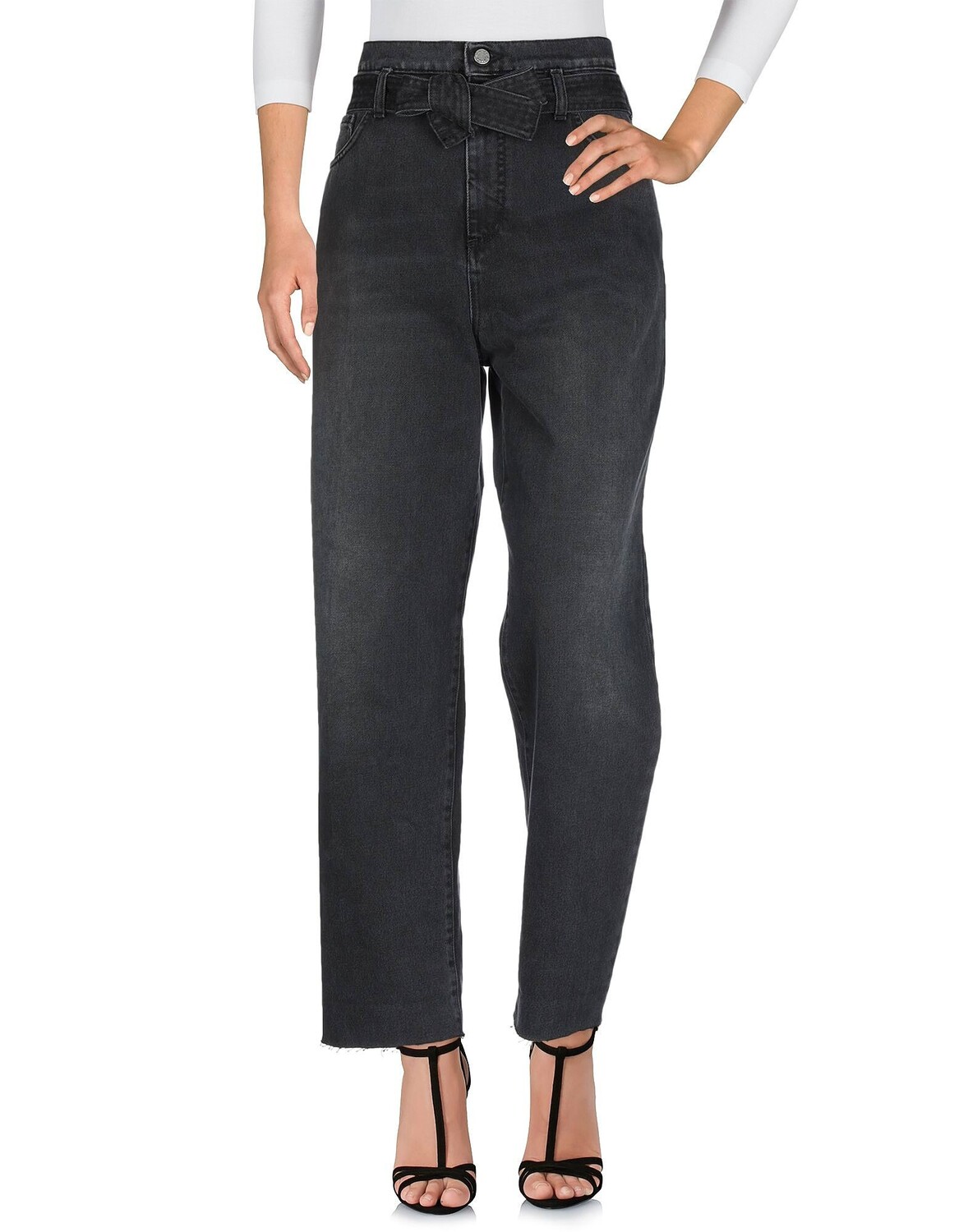 Джинсовая ткань, эффект теней, ремень, логотип, одноцветное изделие, цветная стирка, завышенная талия, застежка спереди, пуговица, молния, множество карманов, необработанный подол