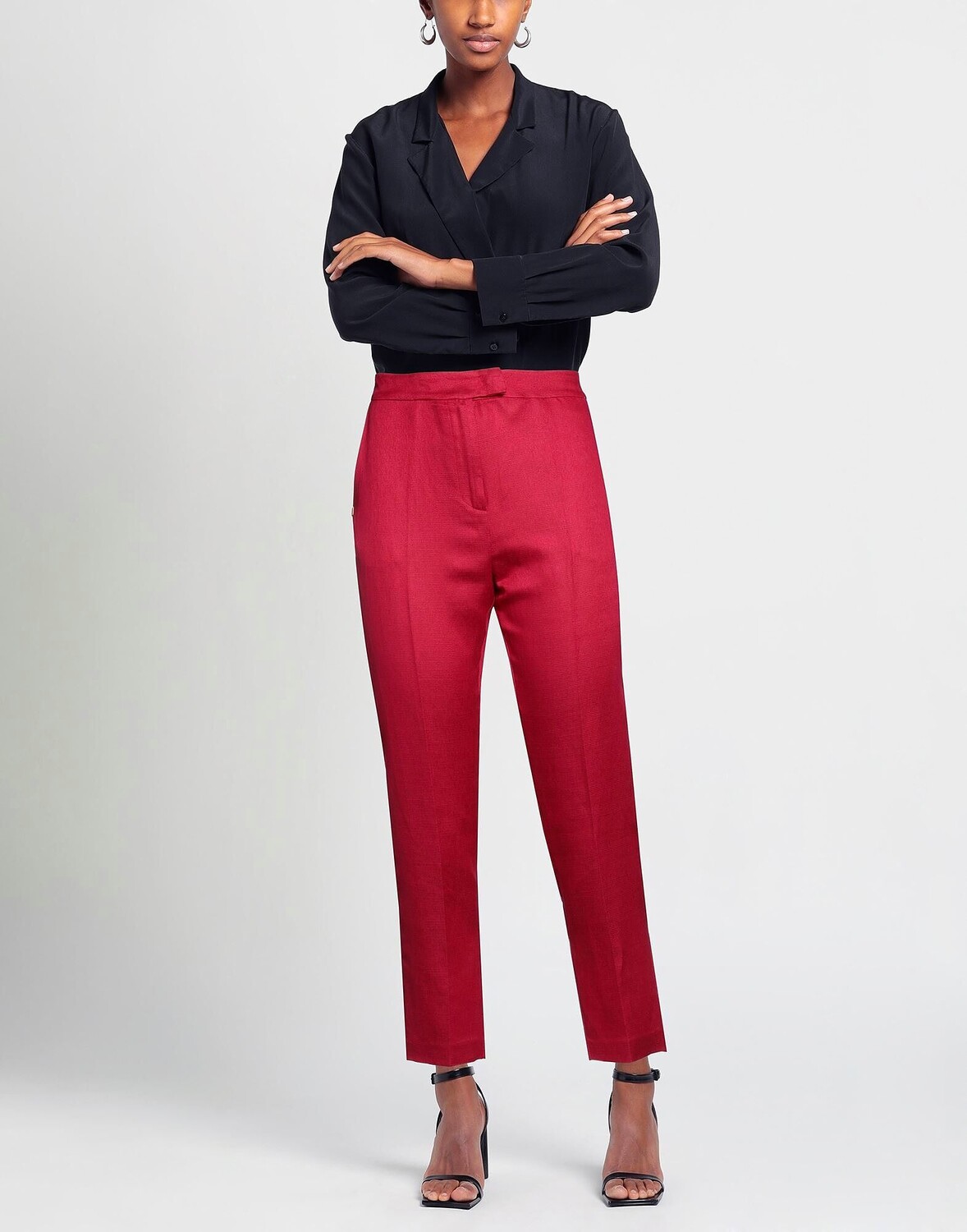 Атлас, логотип бренда, металлические аппликации, одноцветное изделие с аппликациями, завышенная талия, зауженные брючины, классический крой, застежка-молния, застежка на крючки, множество карманов, брюки чинос