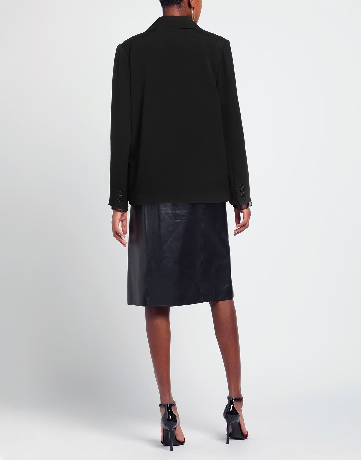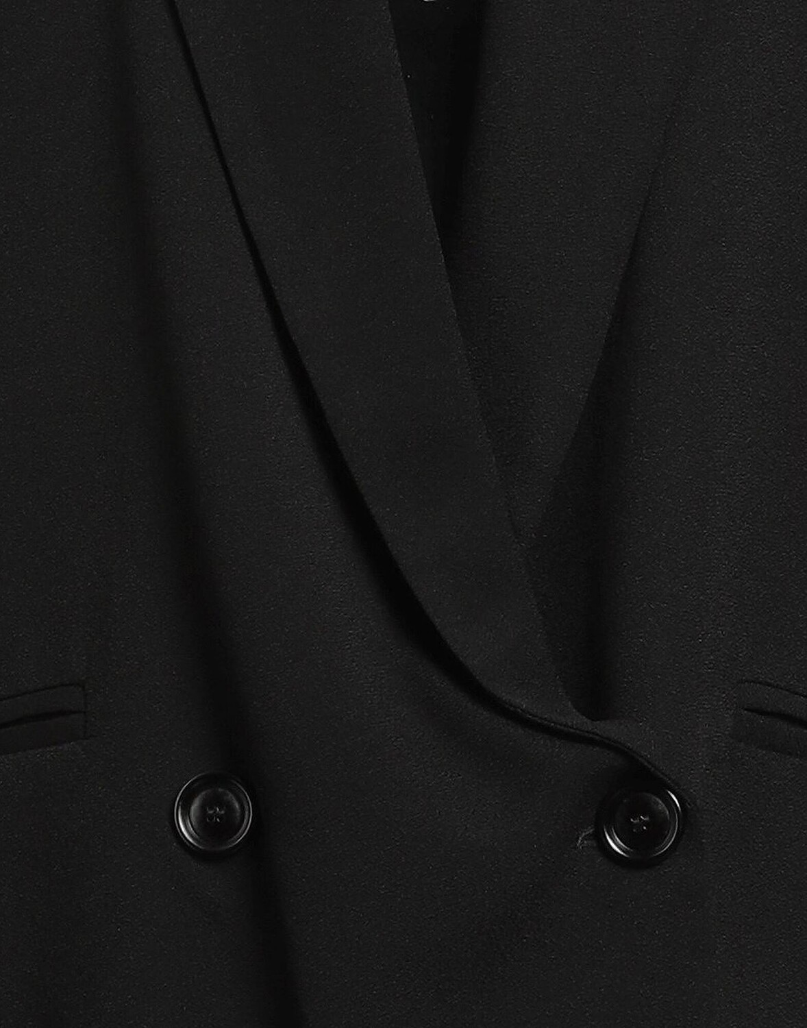 Креп, логотип бренда, одноцветное изделие, воротник с лацканами, двубортный, длинные рукава, внутри на подкладке, пуговицы, множество карманов, двубортный пиджак