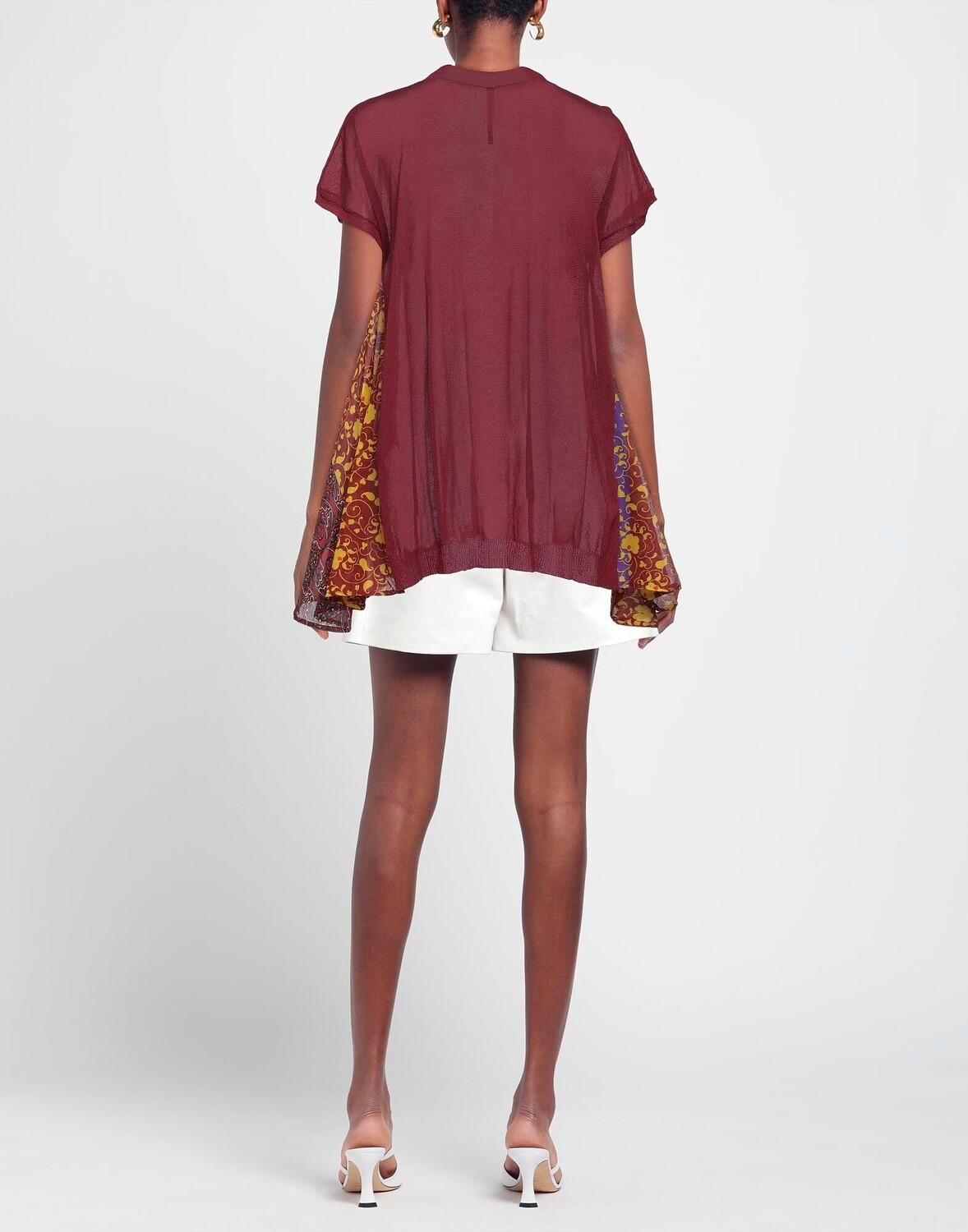 Трикотаж, креп, легкая вязка, логотип бренда, разноцветный узор, верх комбинезона, короткие рукава, без карманов