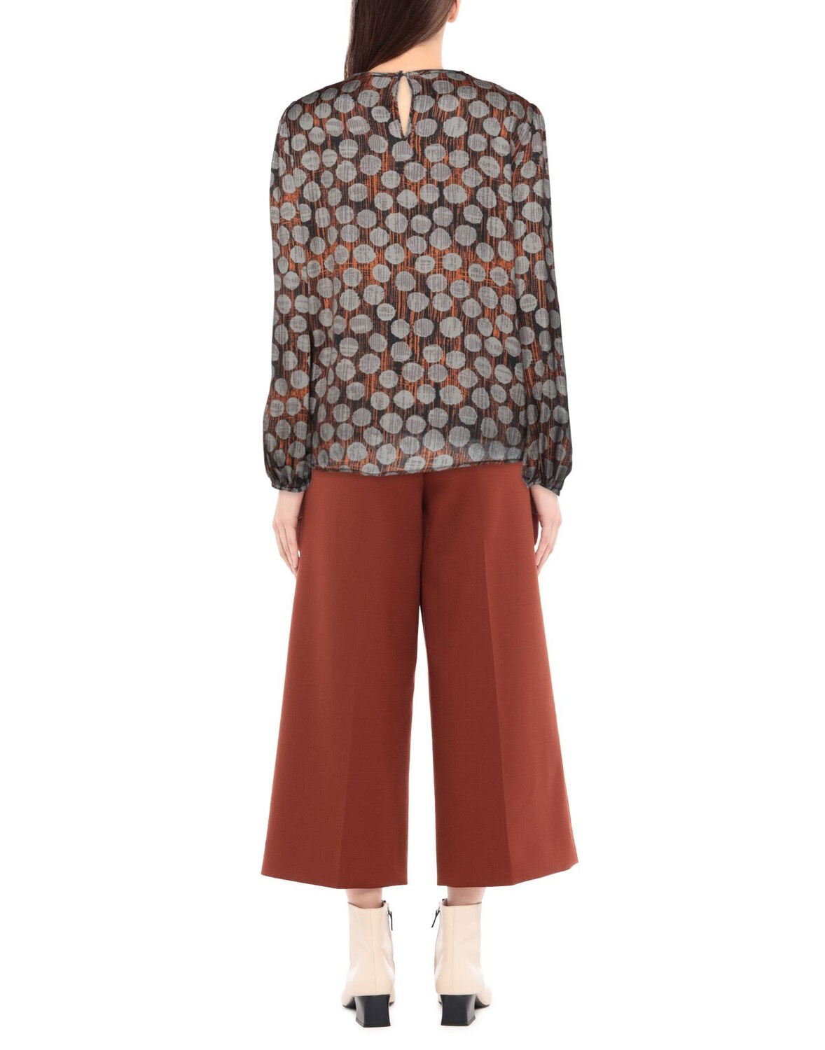 Атлас, логотип бренда, разноцветный узор, круглый воротник, длинные рукава, 1 пуговица, без карманов, манжеты на резинке.