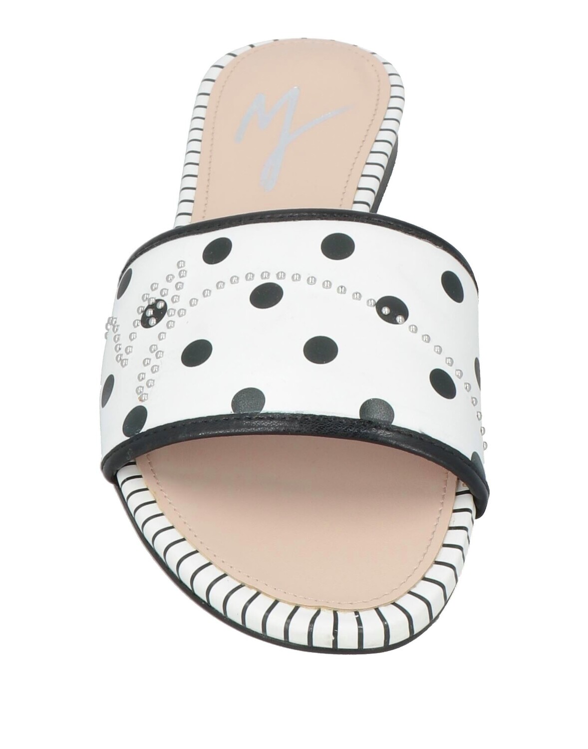 Ткань с покрытием, логотип бренда, заклепки, горошек, внутренняя часть из ткани, круглый носок, без каблука, резиновая подошва, шлепанцы