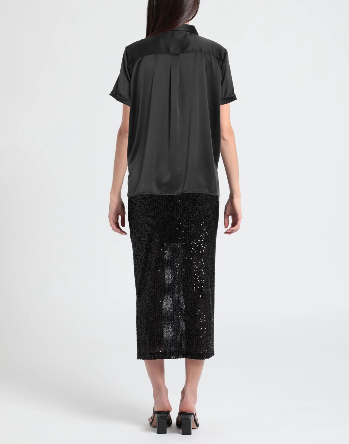 Атлас, без аппликаций, одноцветное изделие, классический воротник, короткие рукава, потайные пуговицы, один нагрудный карман, стрейч.