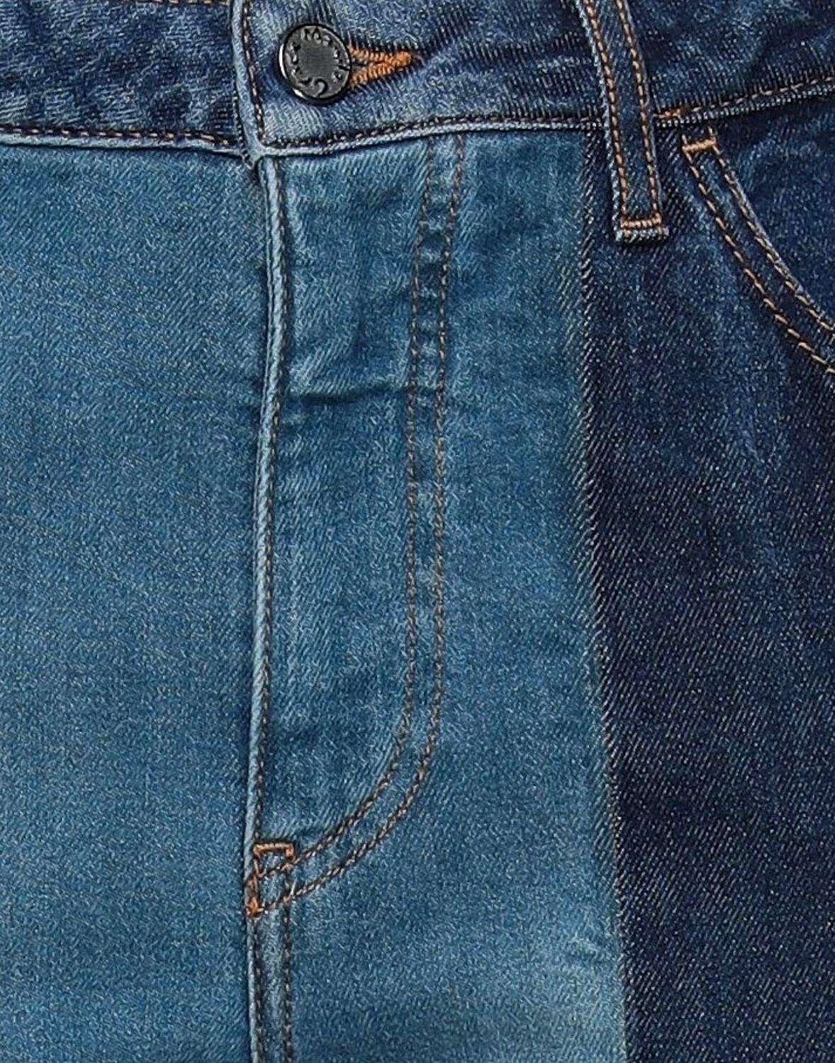 Деним, потертый, логотип бренда, двухцветный, темный цвет, завышенная талия, зауженные брючины, классический крой, застежка-молния, пуговицы, множество карманов, содержит нетекстильные части животного происхождения