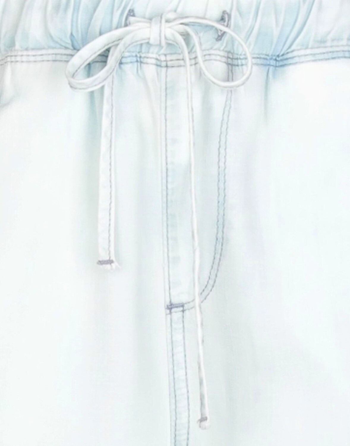 Джинсовая ткань, логотип, одноцветное изделие, светлая стирка, средняя посадка, эластичная талия, множество карманов, эластичный низ