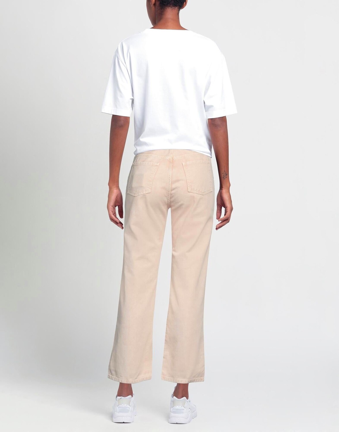 Джинсовая ткань, логотип бренда, одноцветное изделие, цветная стирка, завышенная талия, шлевки для ремня, прямые брючины, стандартный крой, застежка-молния, 1 пуговица, пять карманов, модель прямого кроя