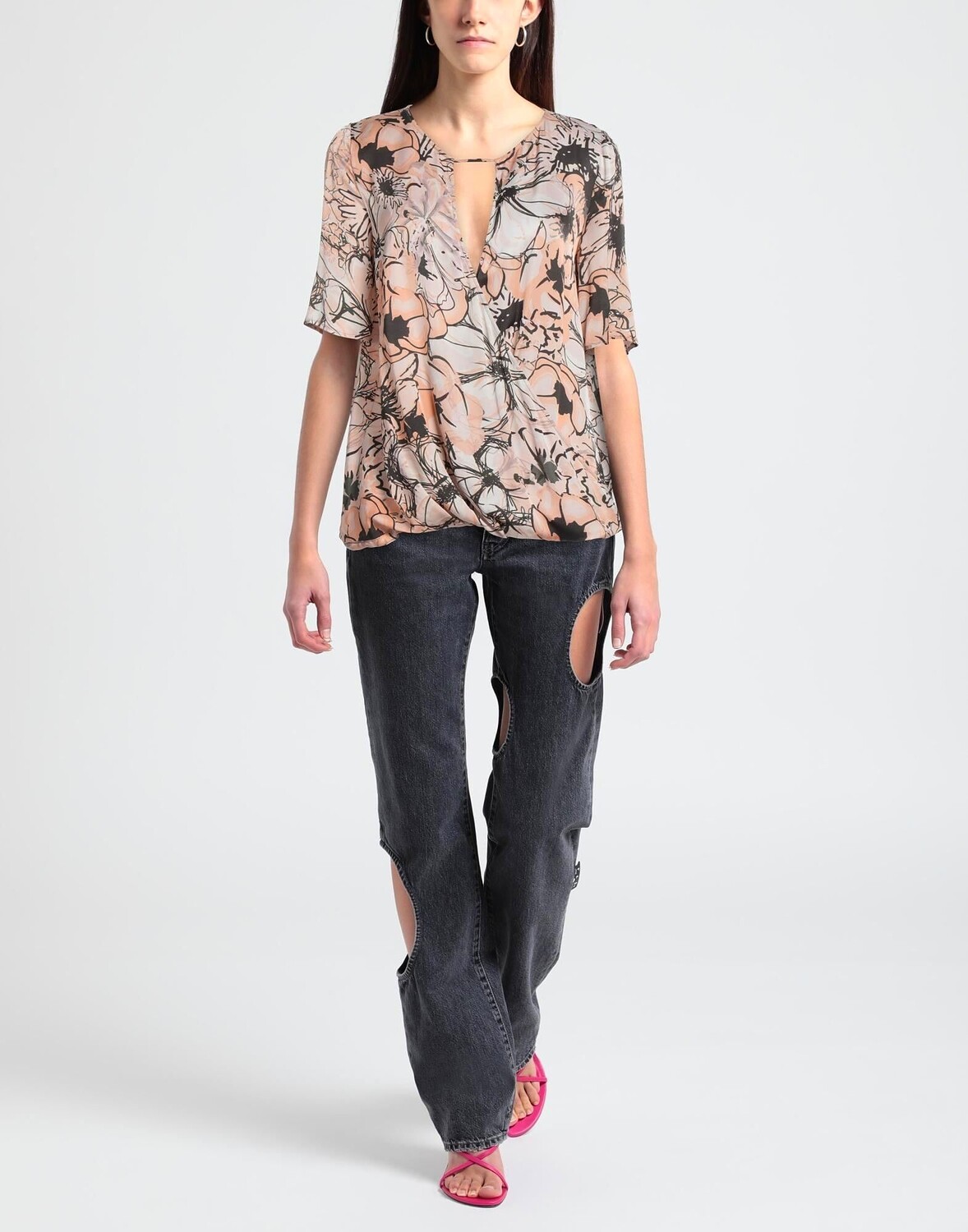 Атлас, логотип бренда, цветочный принт, круглый вырез, короткие рукава, без карманов