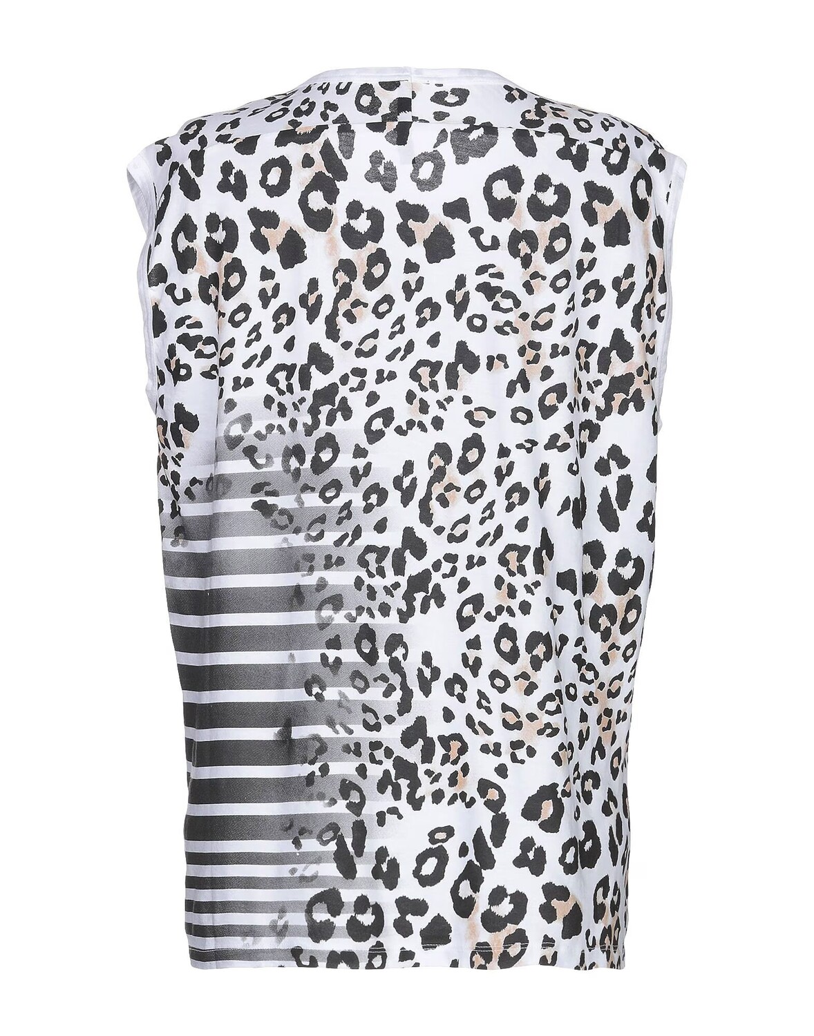 Джерси, логотип, леопардовый принт, круглый воротник, без рукавов, без карманов