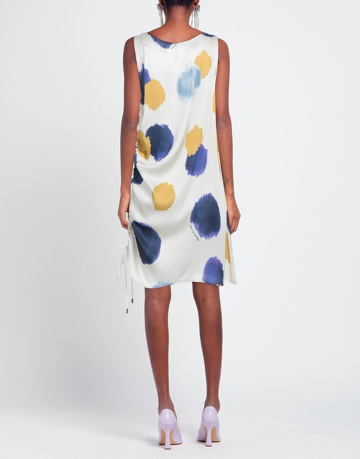 Сатин, кружево, логотип бренда, разноцветный рисунок, круглый воротник, без рукавов, без подкладки, платье