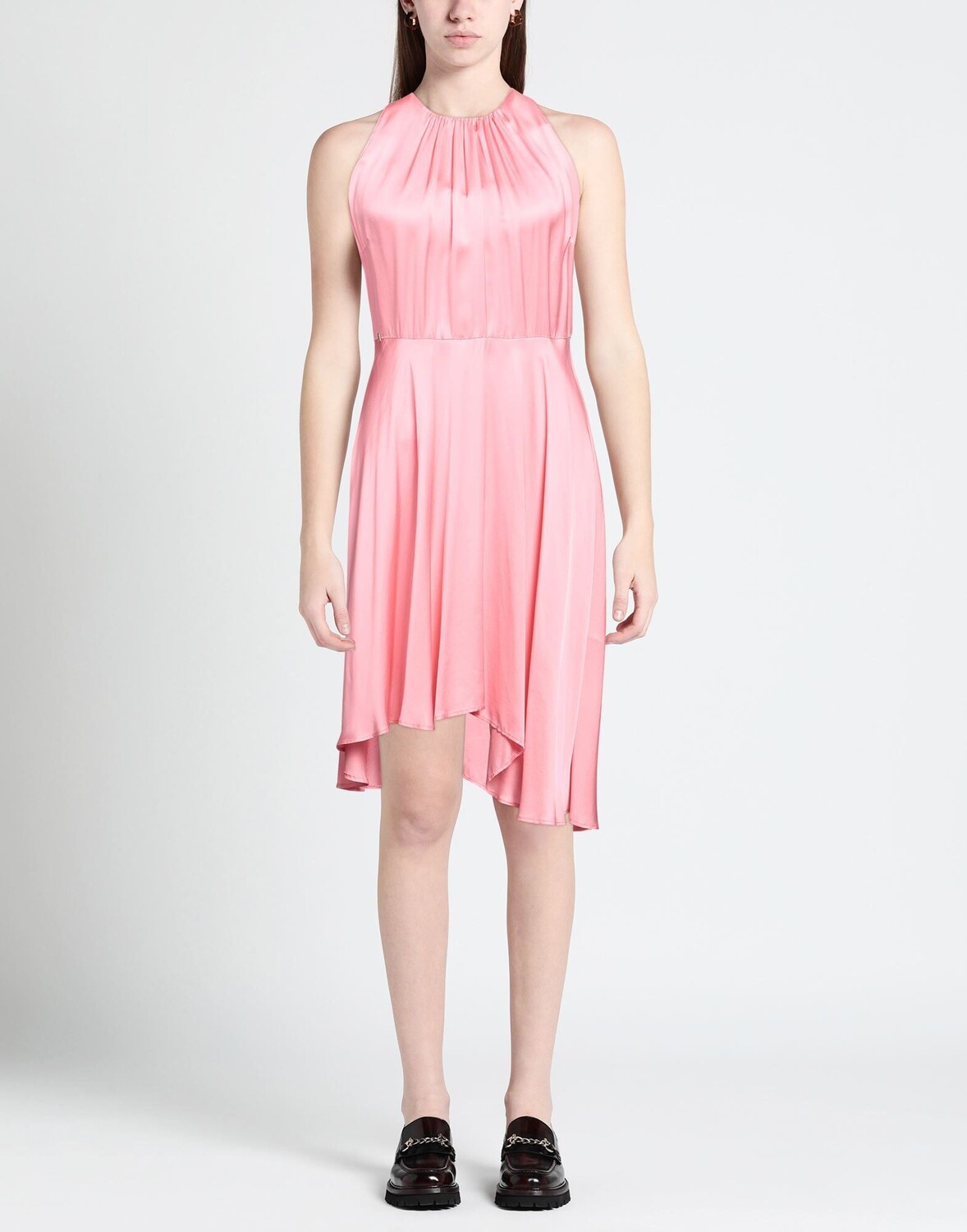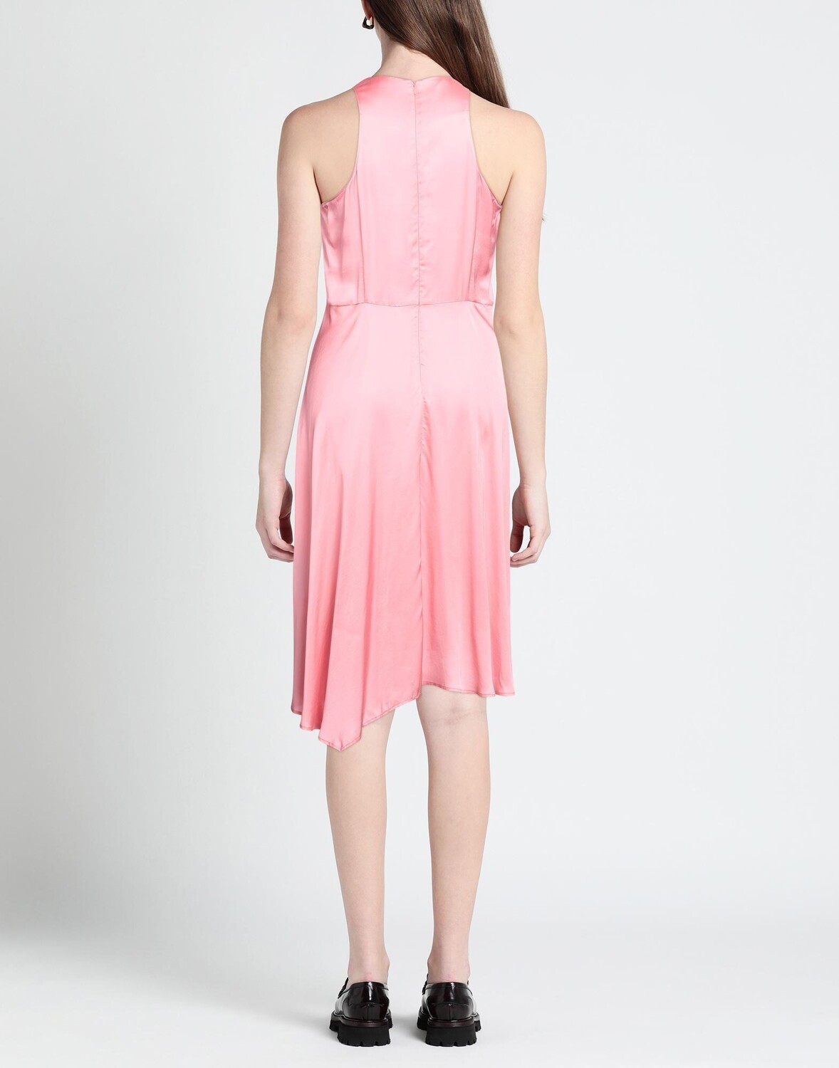 Атлас, логотип бренда, одноцветное изделие, круглый вырез горловины, без рукавов, внутренняя часть на частичной подкладке, застежка-молния, без карманов, асимметричное платье