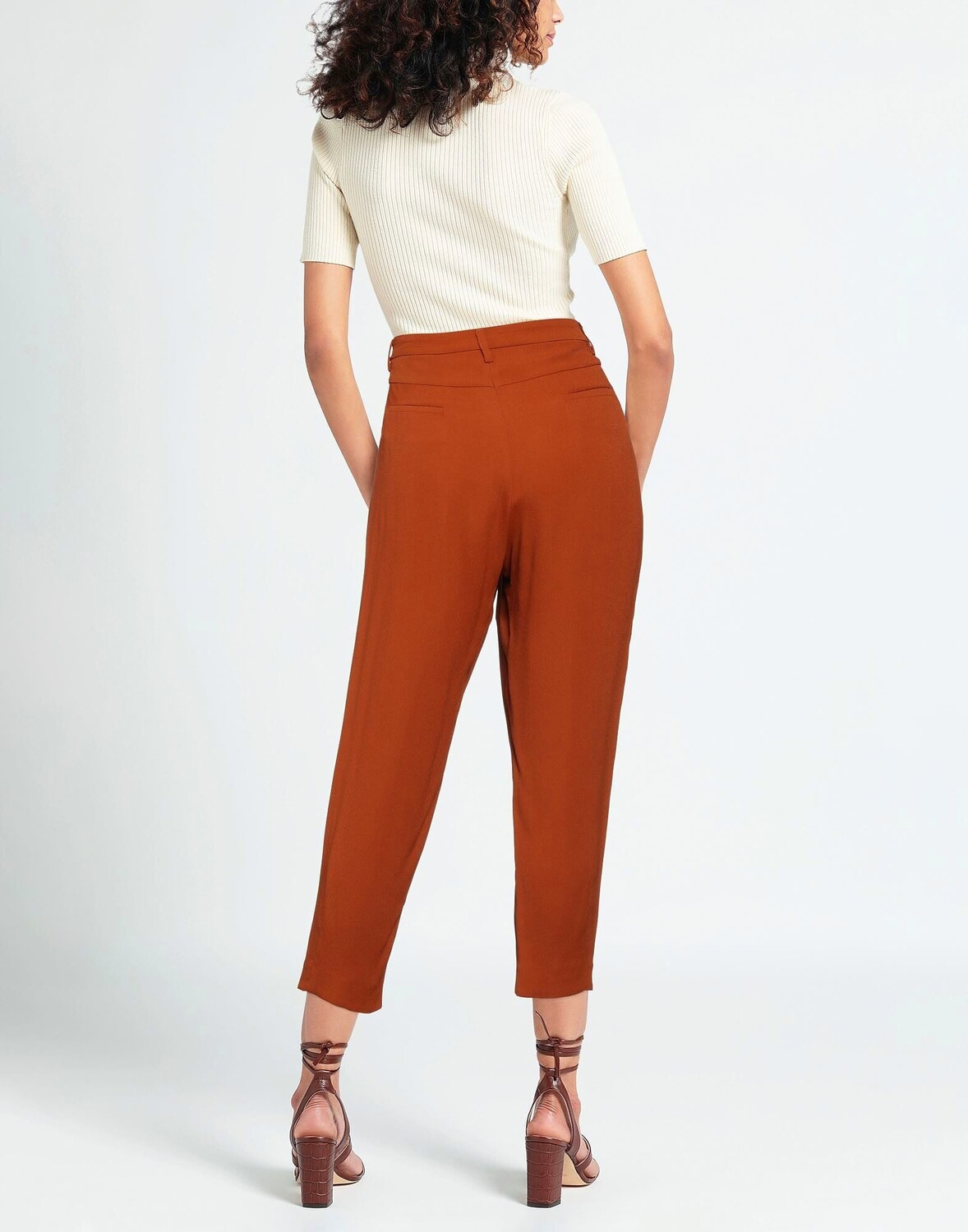 Креп, складки, логотип бренда, одноцветное изделие с аппликациями, завышенная талия, шлевки для ремня, зауженная брючина, стандартный крой, без подкладки, застежка на крючки, застежка-молния, множество карманов, стрейч, индивидуальный пошив