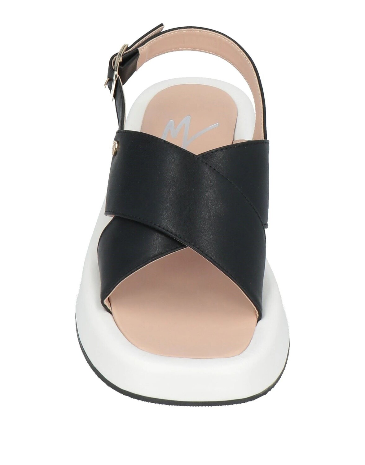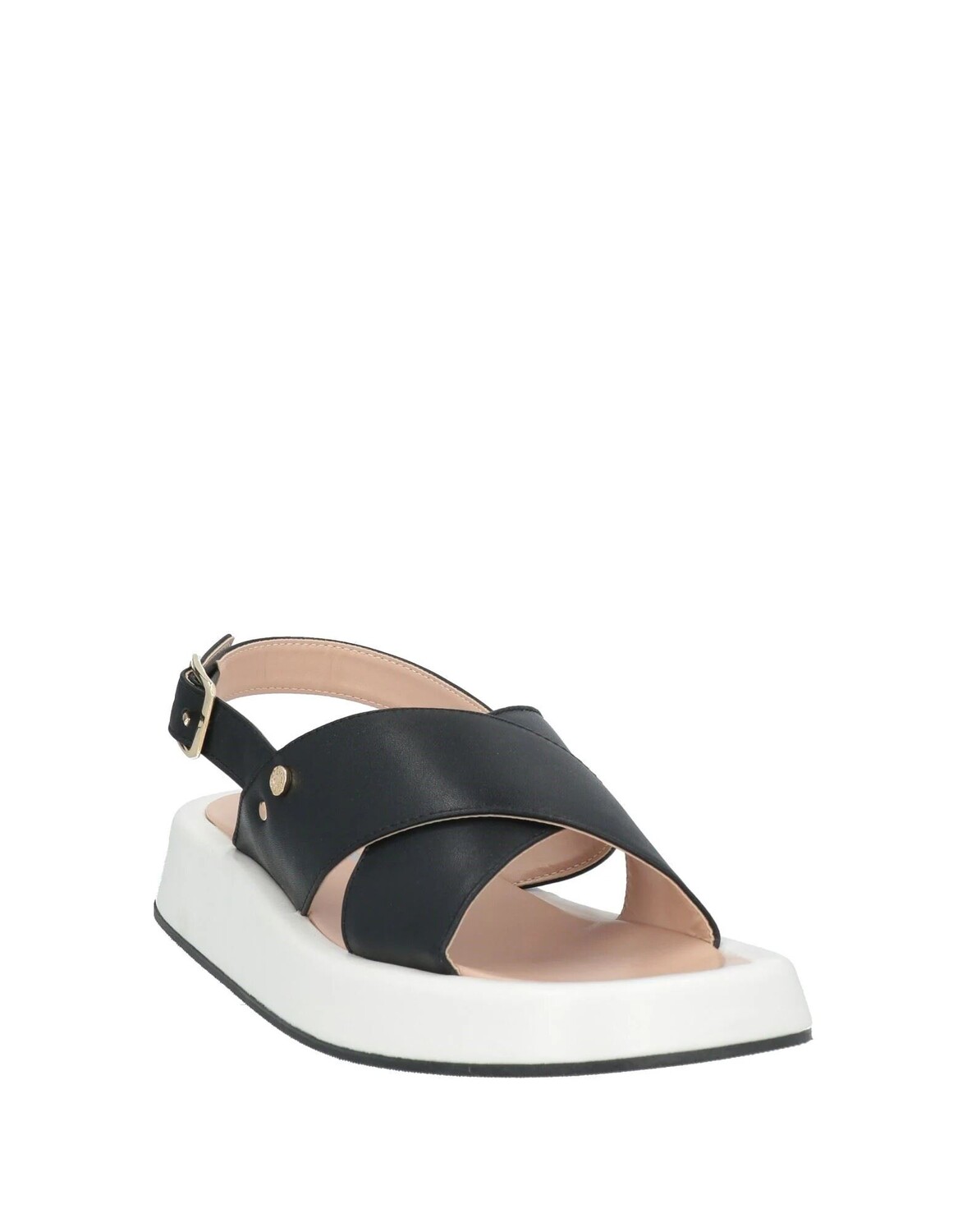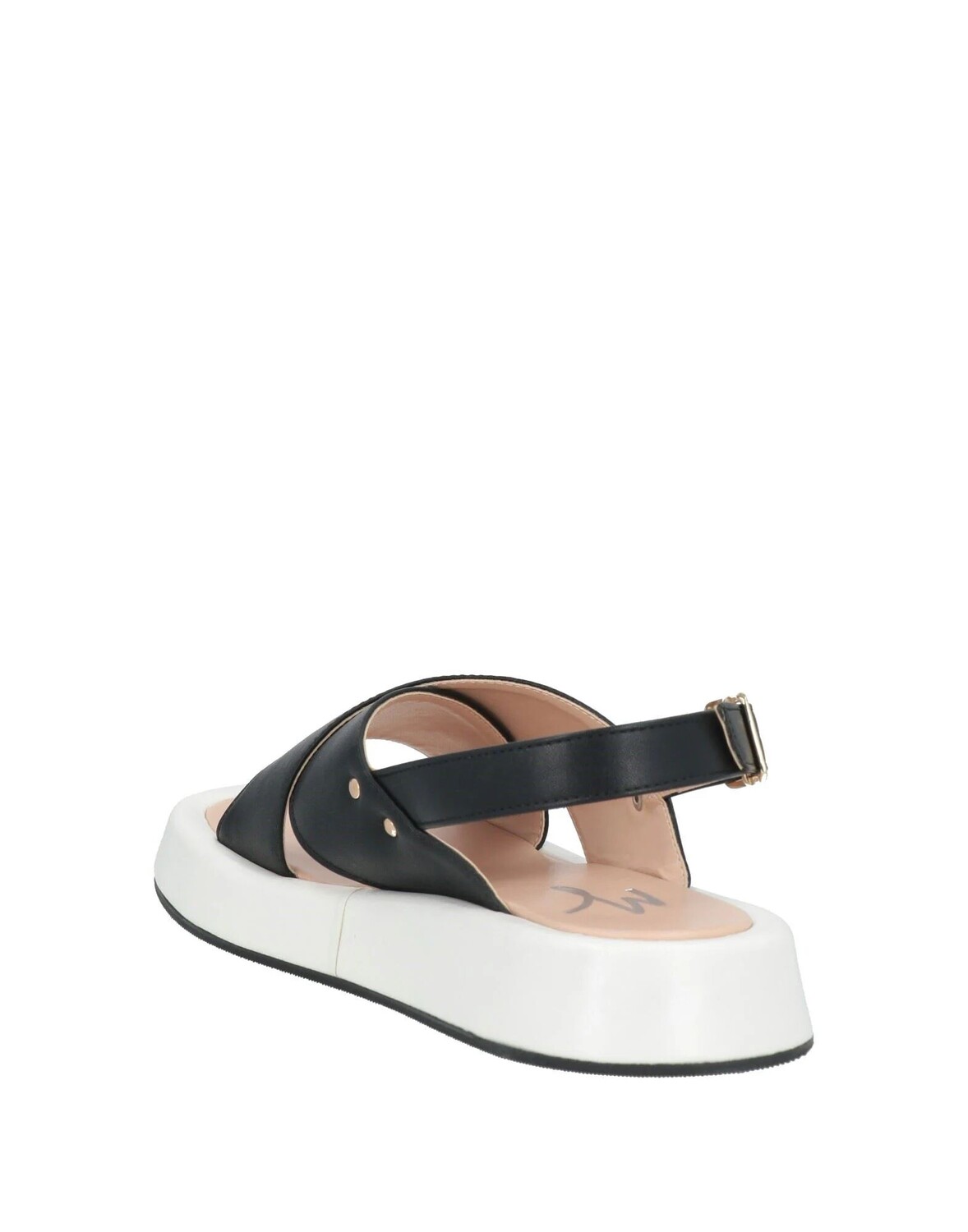Босоножки с ремешком на щиколотке, ткань с покрытием, логотип бренда, одноцветное изделие, внутри на подкладке, застежка с пряжкой, квадратный носок, без каблука, без каблука
