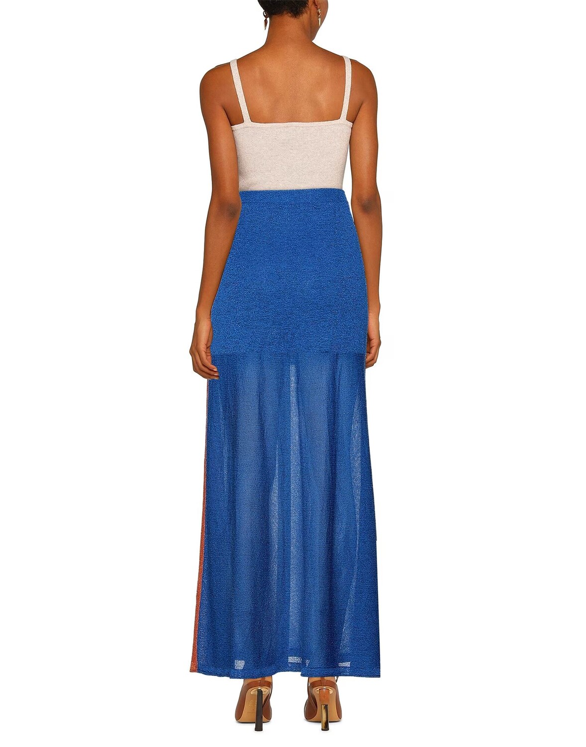 Трикотаж, ламе, легкая вязка, полосы по бокам, двухцветный, талия на резинке, без подкладки, без карманов, расклешенная модель