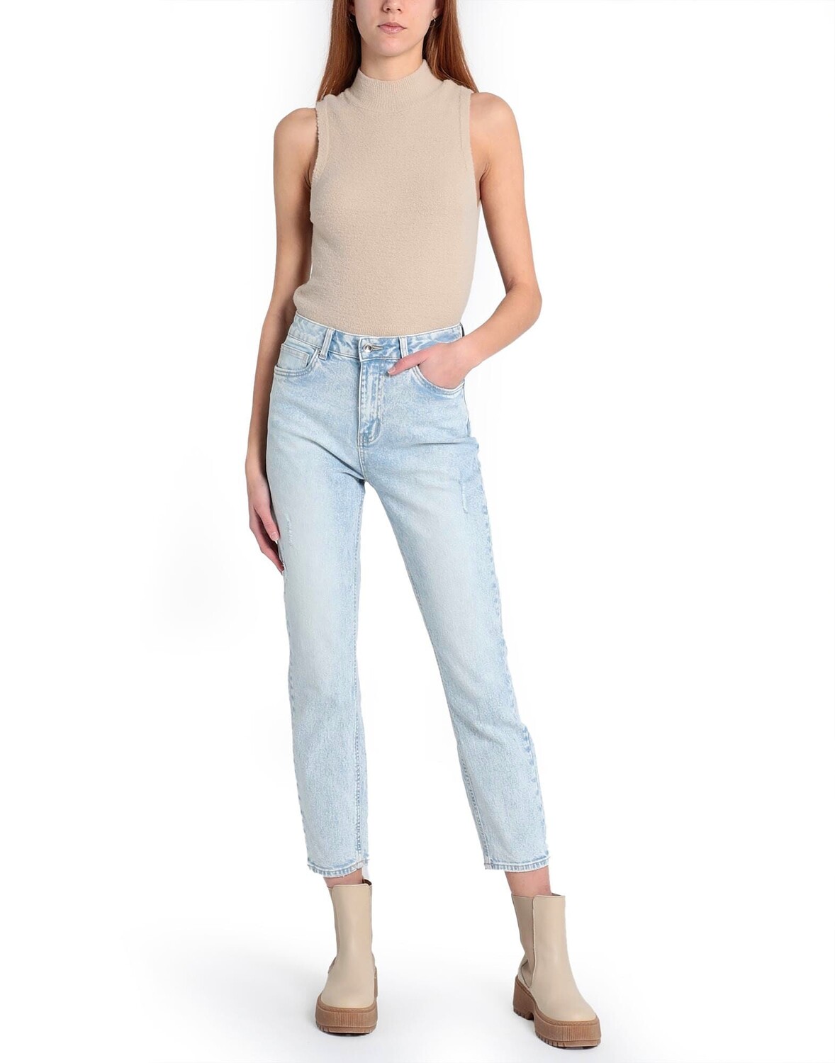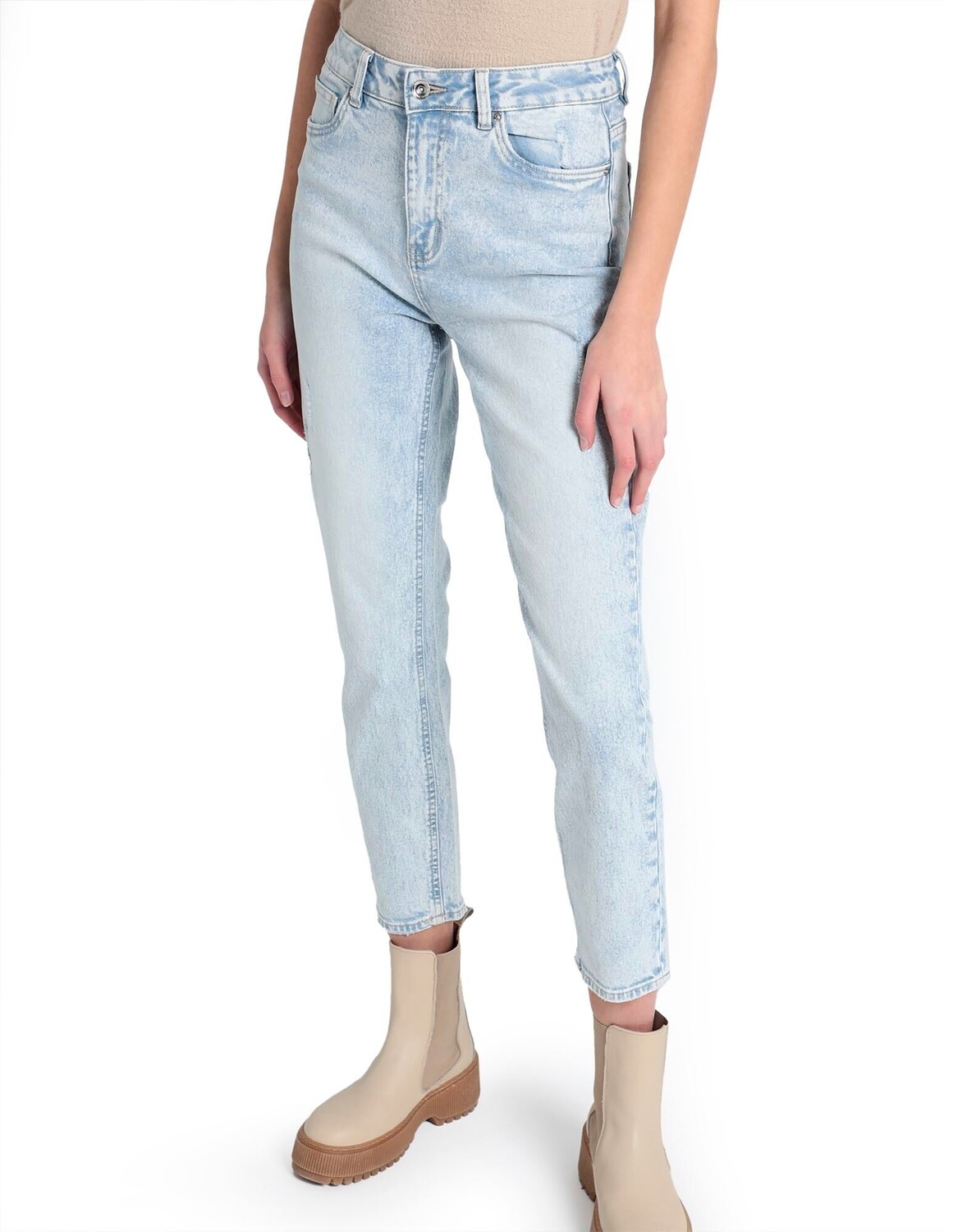 Деним, выцветший, логотип бренда, одноцветное изделие, светлая стирка, завышенная талия, стандартный крой, застежка-молния, 1 пуговица, пять карманов, эффект поношенности