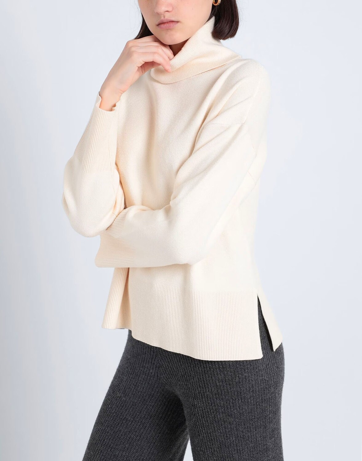 Трикотаж, легкий трикотаж, без аппликаций, одноцветное изделие, водолазка, длинные рукава, без карманов, по низу боковой разрез