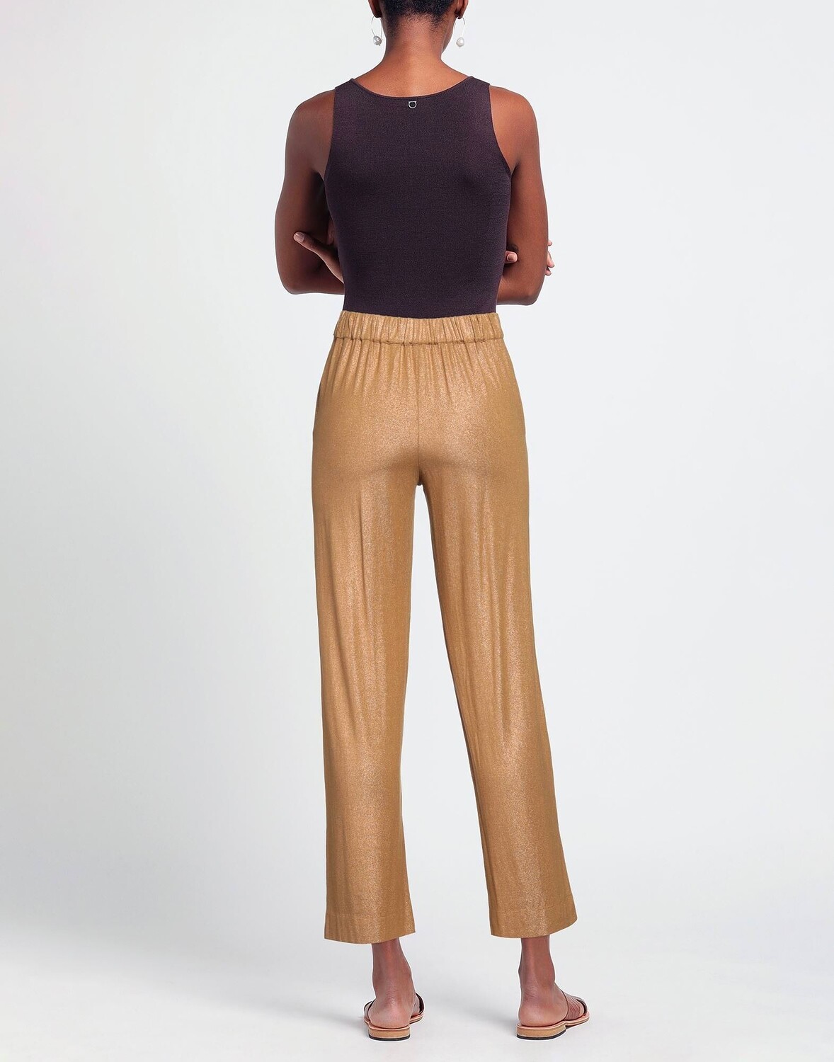 Джерси, ламе, без аппликаций, одноцветное изделие, завышенная талия, резинка на талии, широкие брючины, стандартный крой, множество карманов, стрейч, брюки
