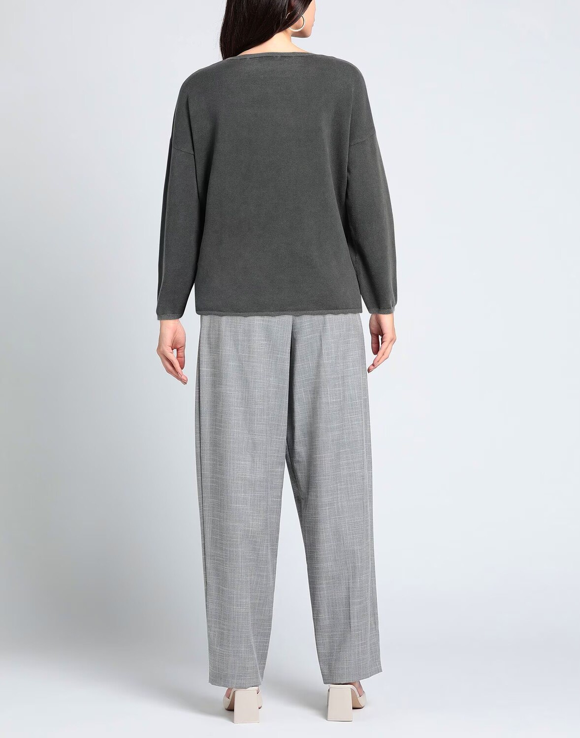 Трикотаж, меланж, легкая вязка, без аппликаций, одноцветное изделие, V-образный вырез, длинные рукава, без карманов, стрейч, большой размер