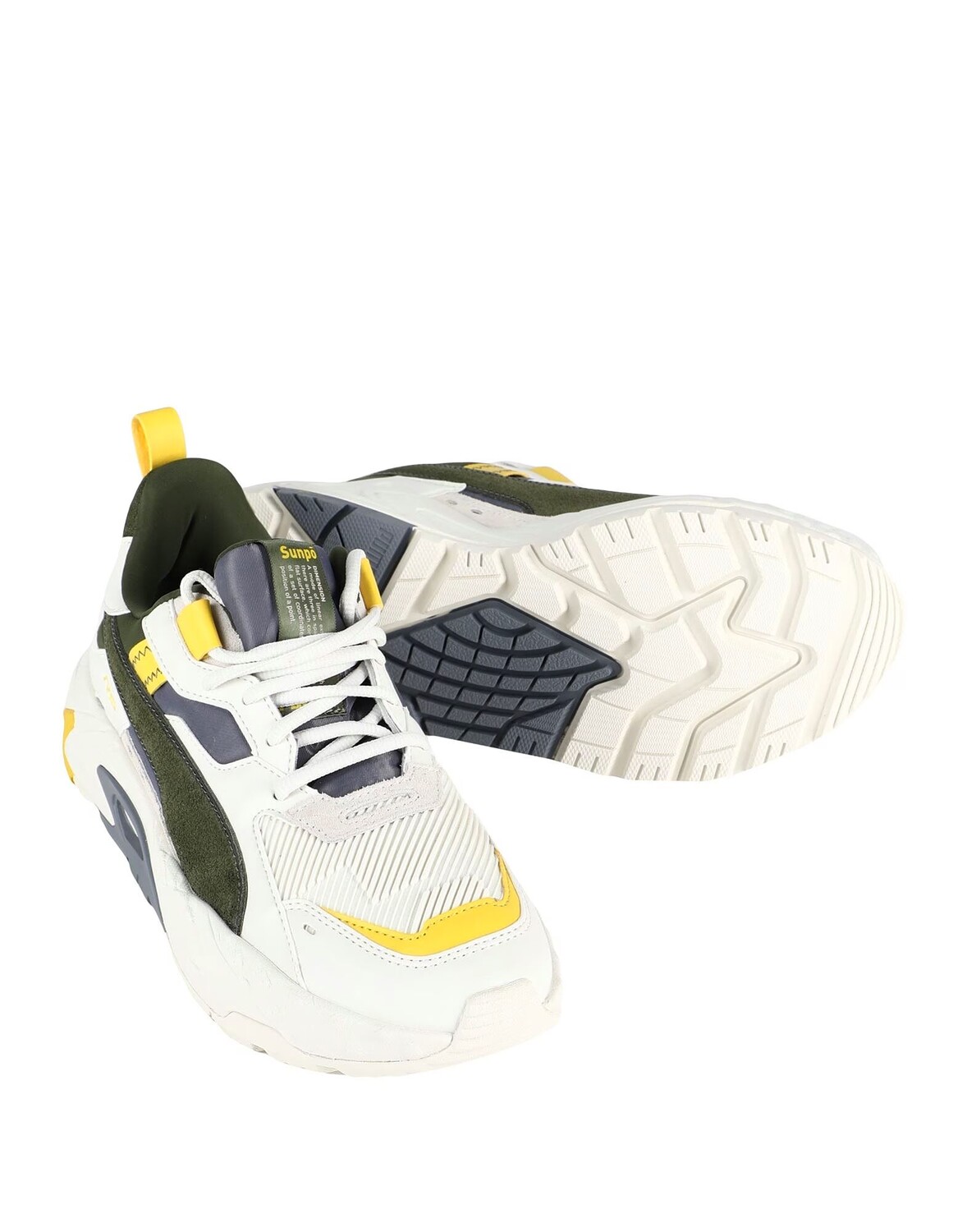 Кожа, техническая ткань, эффект замши, логотип бренда, разноцветный рисунок, внутренняя поверхность из ткани, шнуровка, скругленный носок, без каблука, резиновая подошва, Lifestyle, содержит нетекстильные части животного происхождения, массивные кроссовки