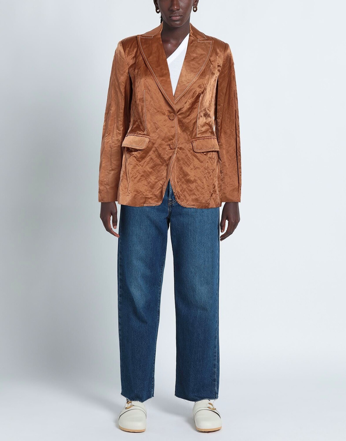 Атлас, без аппликаций, одноцветное изделие, воротник с лацканами, однобортный, длинные рукава, на подкладке, 2 пуговицы, множество карманов, разрез сзади, однобортный пиджак