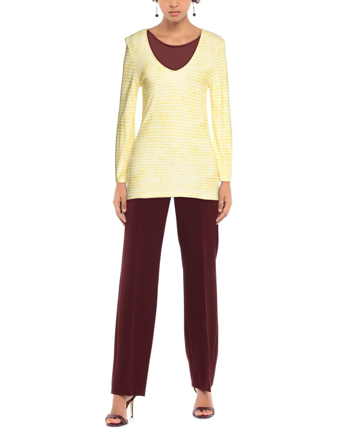 Трикотаж, без аппликаций, в полоску, v-образный вырез, длинные рукава, без карманов, большой размер