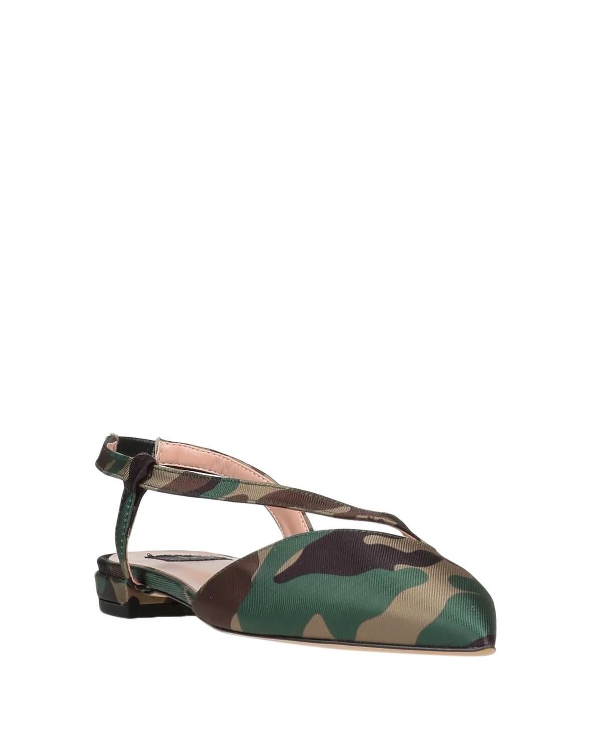Атлас, логотип бренда, камуфляж, внутри на подкладке, бретели на резинке, узкий носок, без каблука, кожаная подошва, содержит нетекстильные части животного происхождения, балетки с пяткой на пятке