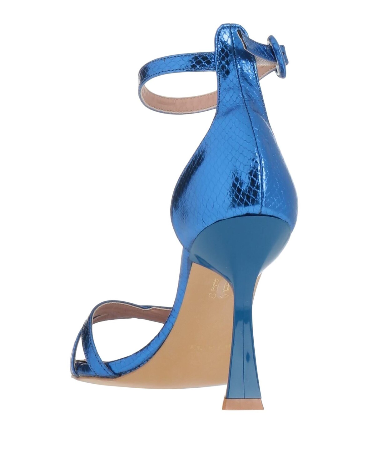 Ткань с покрытием, принт змеиной кожи, эффект ламинирования, без аппликаций, одноцветное изделие, внутри на подкладке, ремешок с пряжкой, скругленный носок, каблук-катушка, кожаная подошва, содержит нетекстильные части животного происхождения, сандалии с ремешком на щиколотке