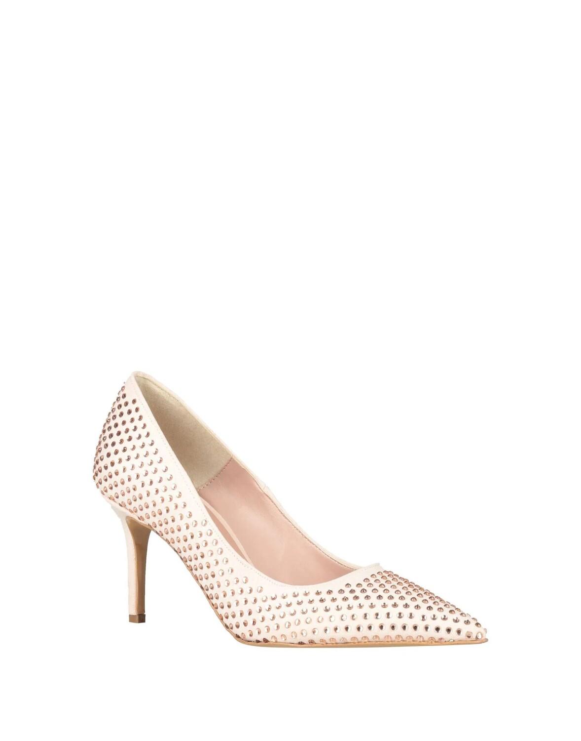 Синтетическое волокно, эффект замши, стразы, одноцветное изделие с аппликациями, внутри на подкладке, острый носок, каблук-щипок, кожаная подошва, содержит нетекстильные части животного происхождения, туфли на шпильке