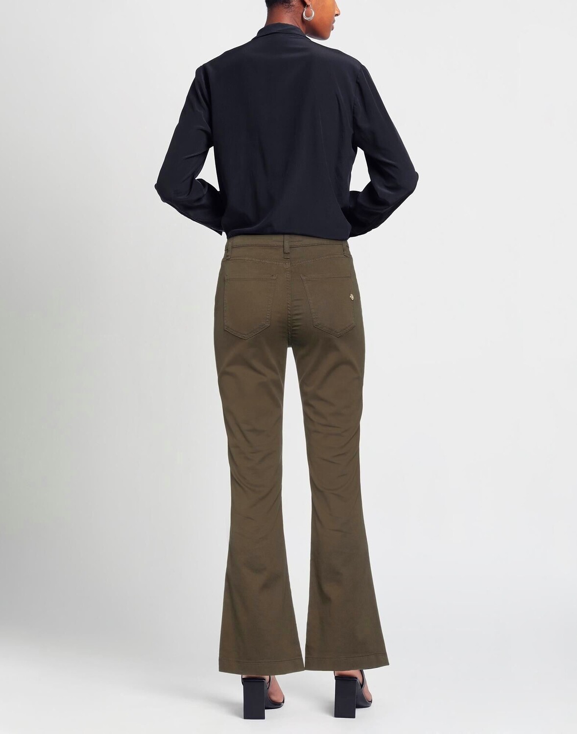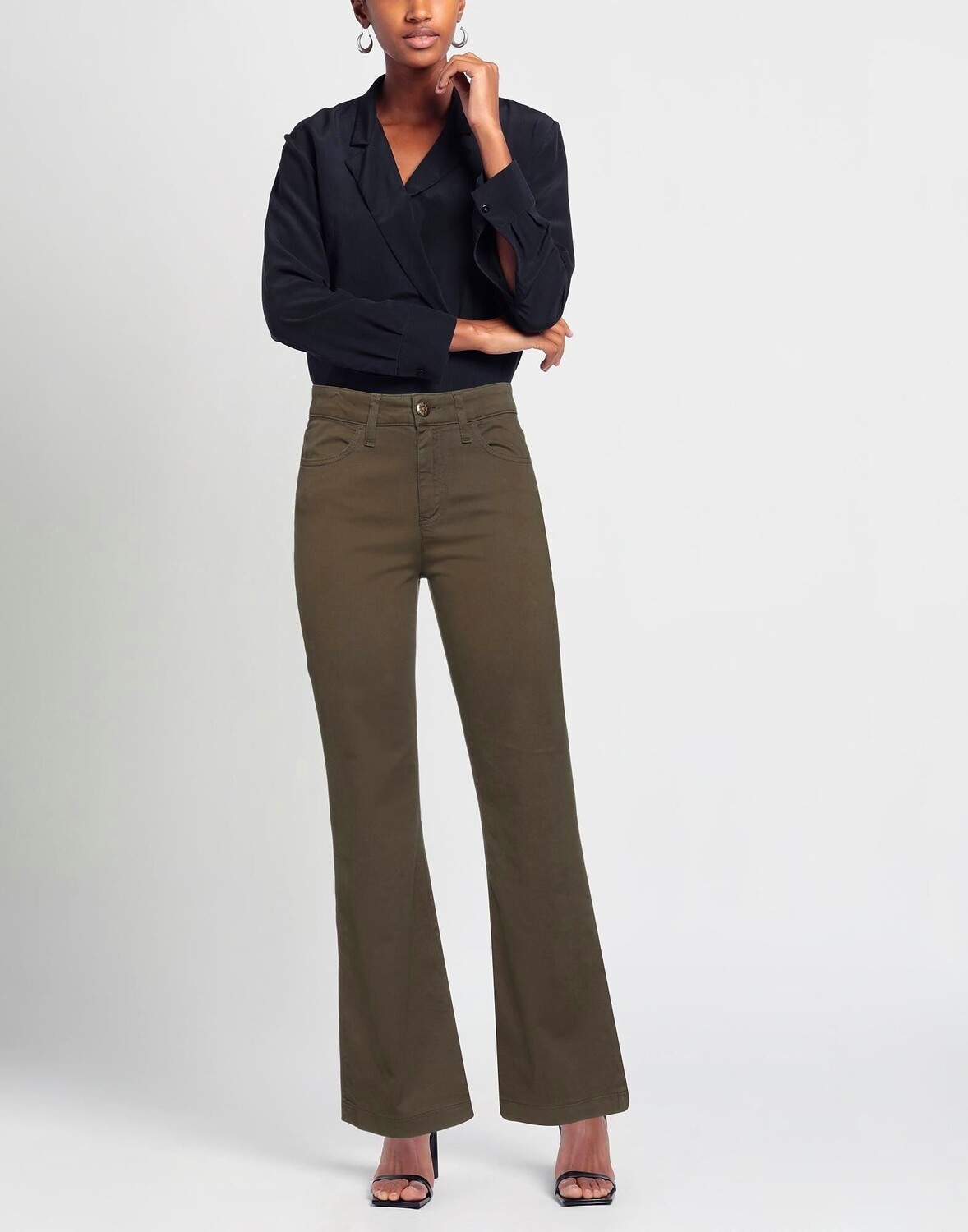 Габардин, логотип бренда, одноцветное изделие, средняя посадка, шлевки для ремня, расклешенный крой, классический крой, застежка-молния, 1 пуговица, несколько карманов, стрейч, брюки