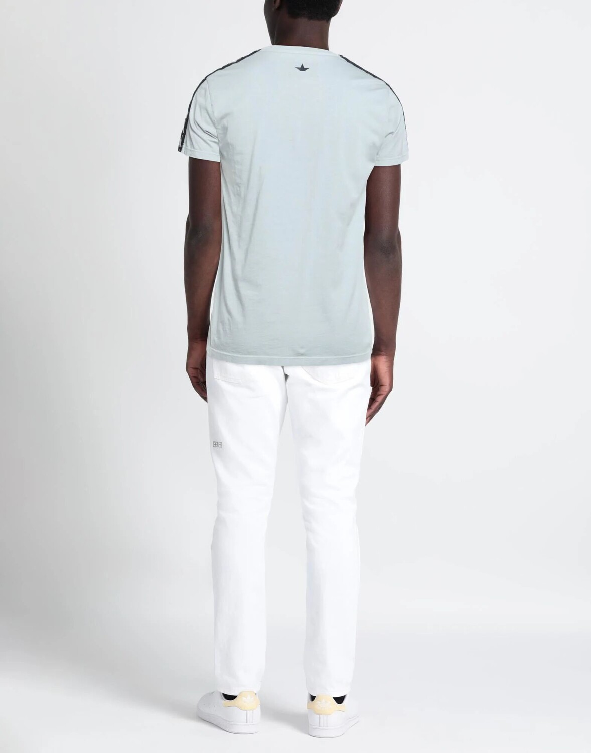 Трикотаж, логотип бренда, полосы по боковым швам, одноцветное изделие с аппликациями, круглый воротник, короткие рукава, без карманов
