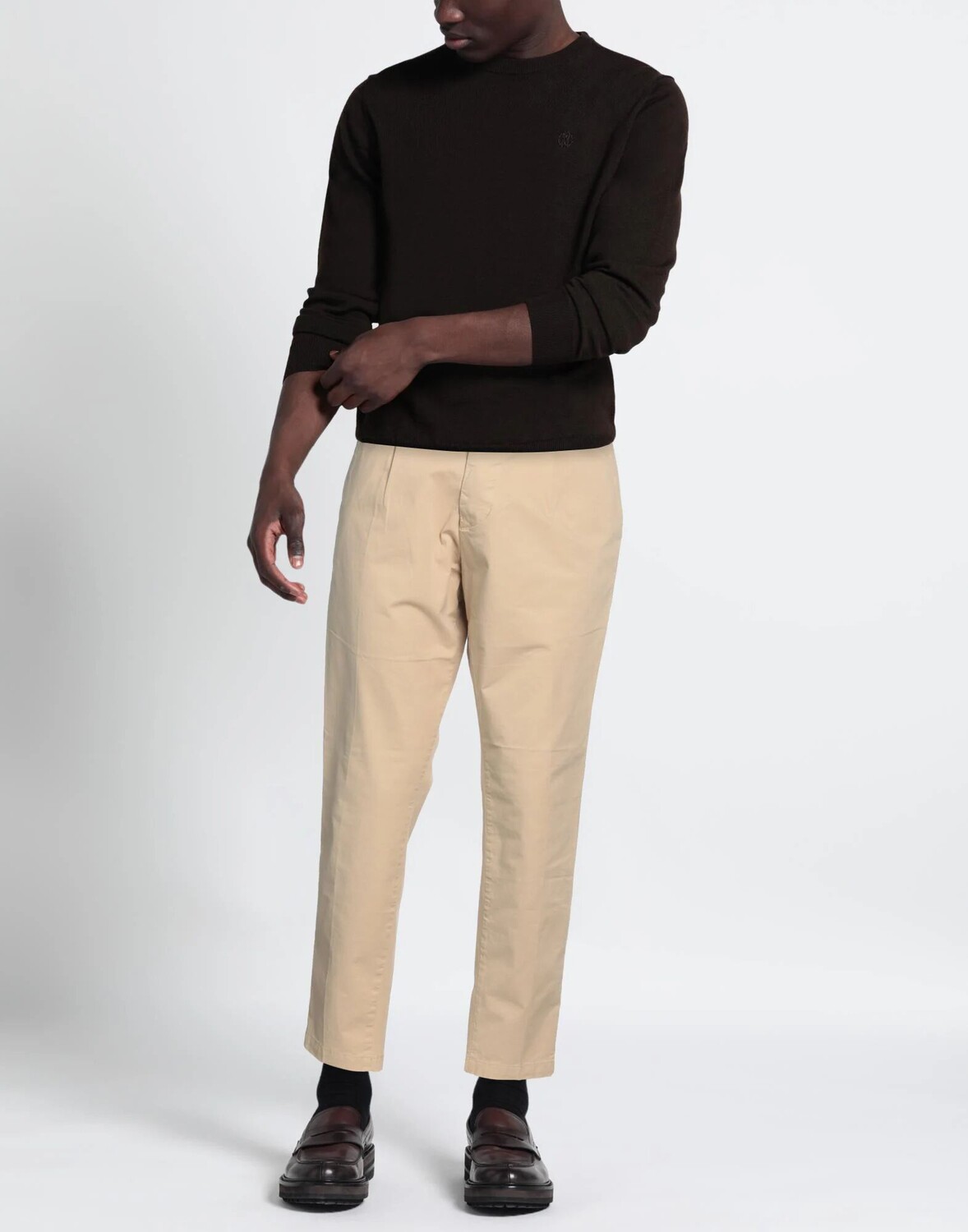 Габардин, логотип бренда, одноцветное изделие, завышенная талия, зауженные брюки, узкие брюки, пуговицы, множество карманов, стрейч