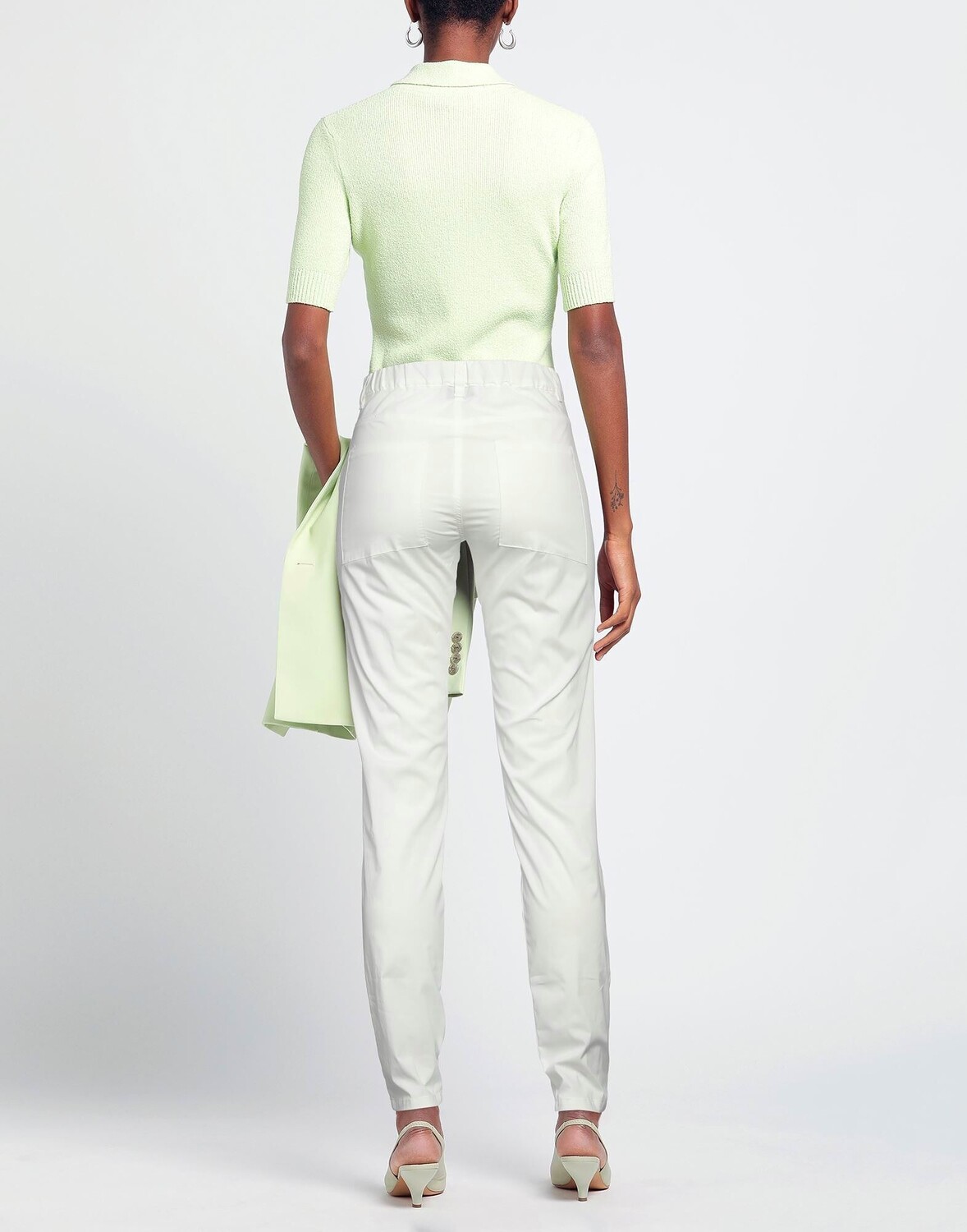 Ткань, без аппликаций, одноцветное изделие, завышенная талия, зауженные брючины, узкие брюки, 1 пуговица, застежка-молния, множество карманов, эластичный, ручная стирка или химчистка, нельзя сушить в стиральной машине, не отбеливать, брюки чинос